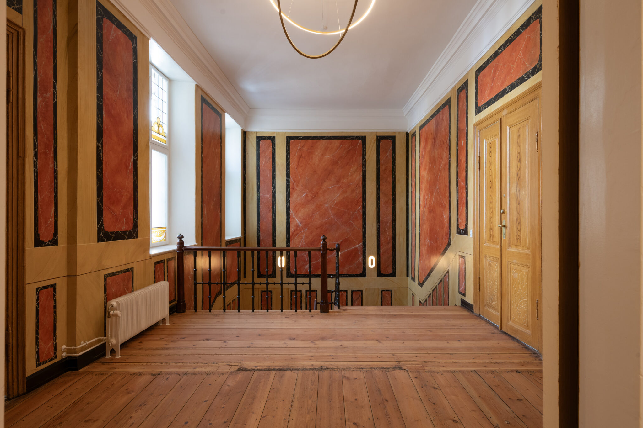 Renoveringen er udført med stor respekt for bygningens oprindelige håndværk og detaljer og det fredede forhus tager sit arkitekttoniske og dekorative udspring fra tiden under ejerperioden af Håndværkerforeningen, nemlig den historicistiske tid. Hovedtrappen er blevet nænsomt restaureret med vægdekorationer, der genskaber de originale marmoreringer og ådringer. På beletagen er farvearkæologiske undersøgelser blevet brugt til at genskabe historicistiske farver og materialer på vægge, gulve og lofter. De originale sildebensparketgulve er blevet nøje restaureret i baghuset, og stuk detaljer er blevet renset og bragt tilbage til deres oprindelige udtryk. Facaden er ligeledes blevet restaureret, herunder vinduer og den refendfugede underetage, der nu fremstår som ved bygningens opførelse. Samtidig er alle bygningens installationer blevet udskiftet for at imødekomme moderne krav og sikre en lang levetid.
