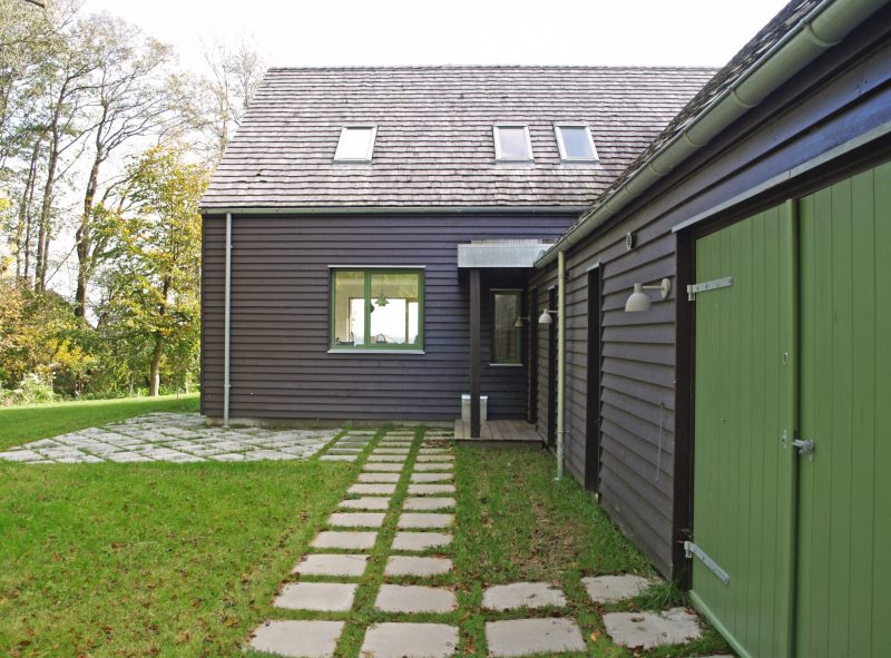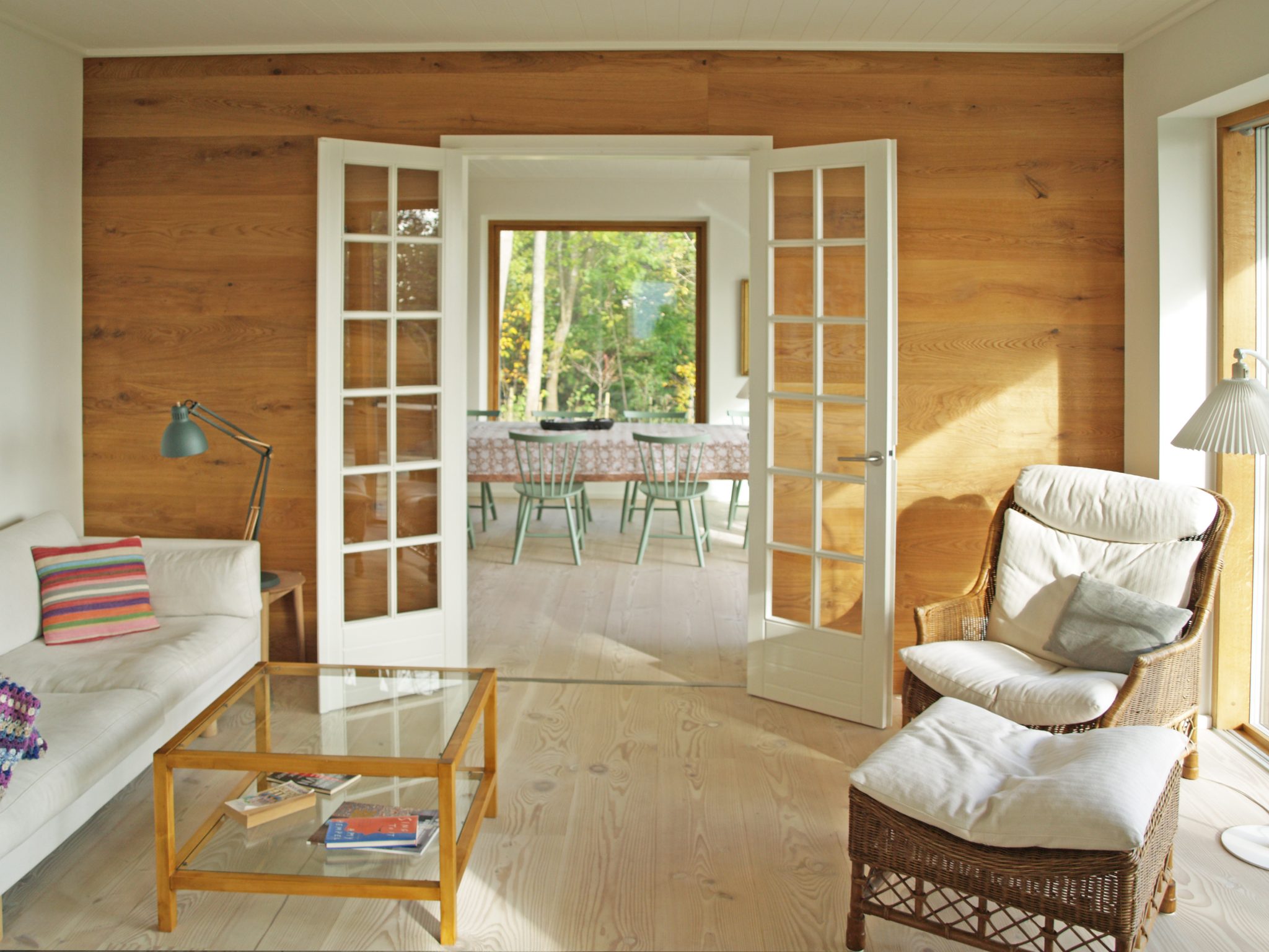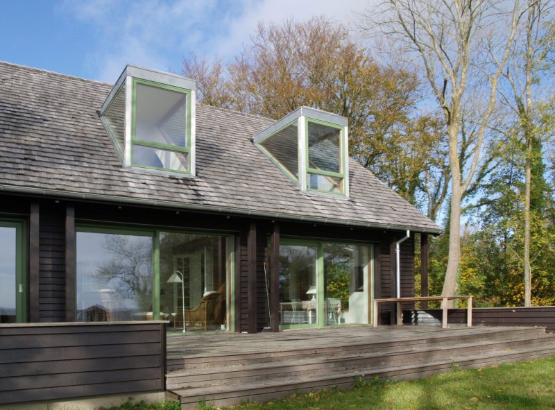 Husets udvendige klimaskærm og den indvendige aptering er udført i bæredygtige nordiske træsorter.