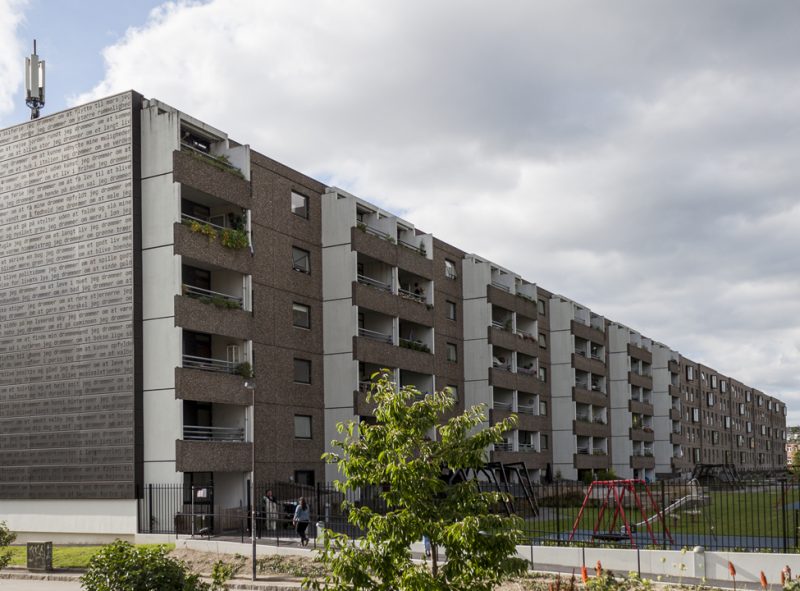 Både renoveringen og gavlen er udviklet i tæt dialog med beboerne. Ligeledes er det omkringliggende landskab også udviklet i samarbejde med beboerne.