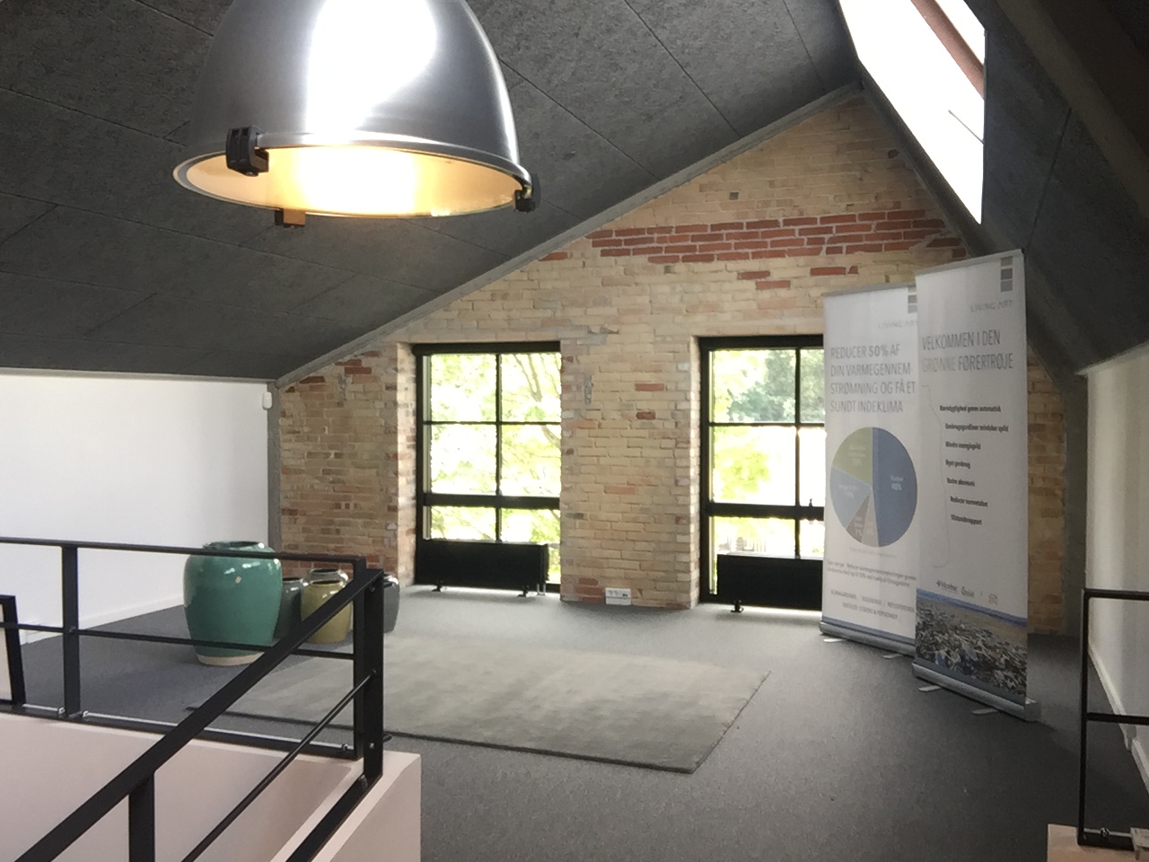 Vores plan var at beholde så meget muligt af bygningens oprindelige rå karakter og materialer, som et flot modspil til de mange raffinerede boligtekstiler der udstilles og sælges i Living Art. Samtidigt ønskede vi at bygningen kunne bruges til udstillinger, arrangementer, samtidigt med udlejning, til flere kreative virksomheder på samme tid.