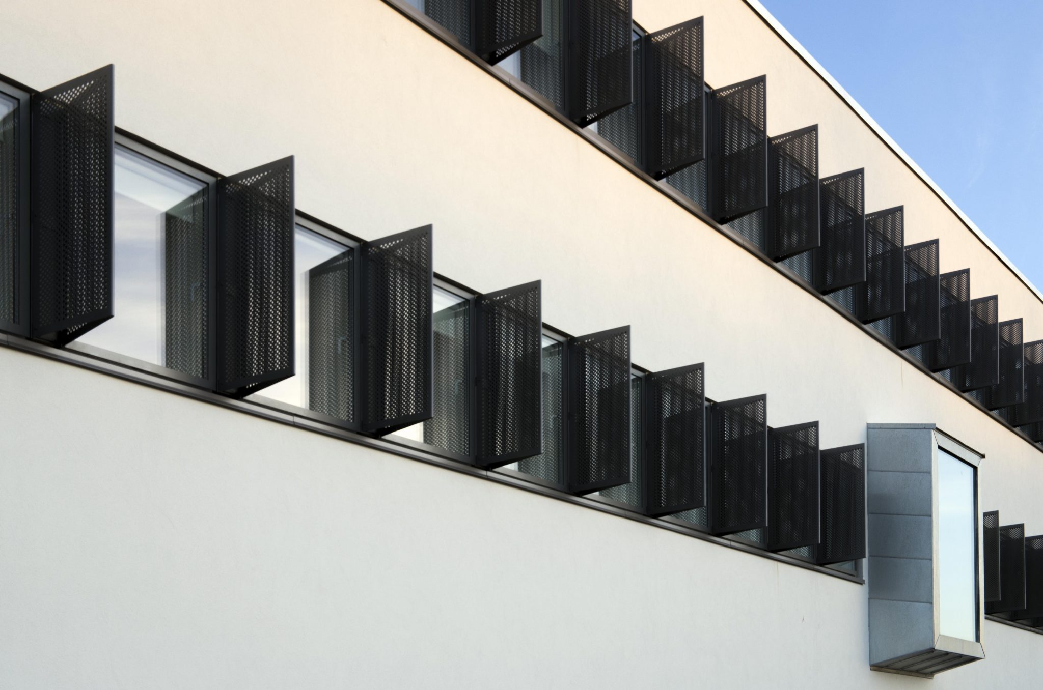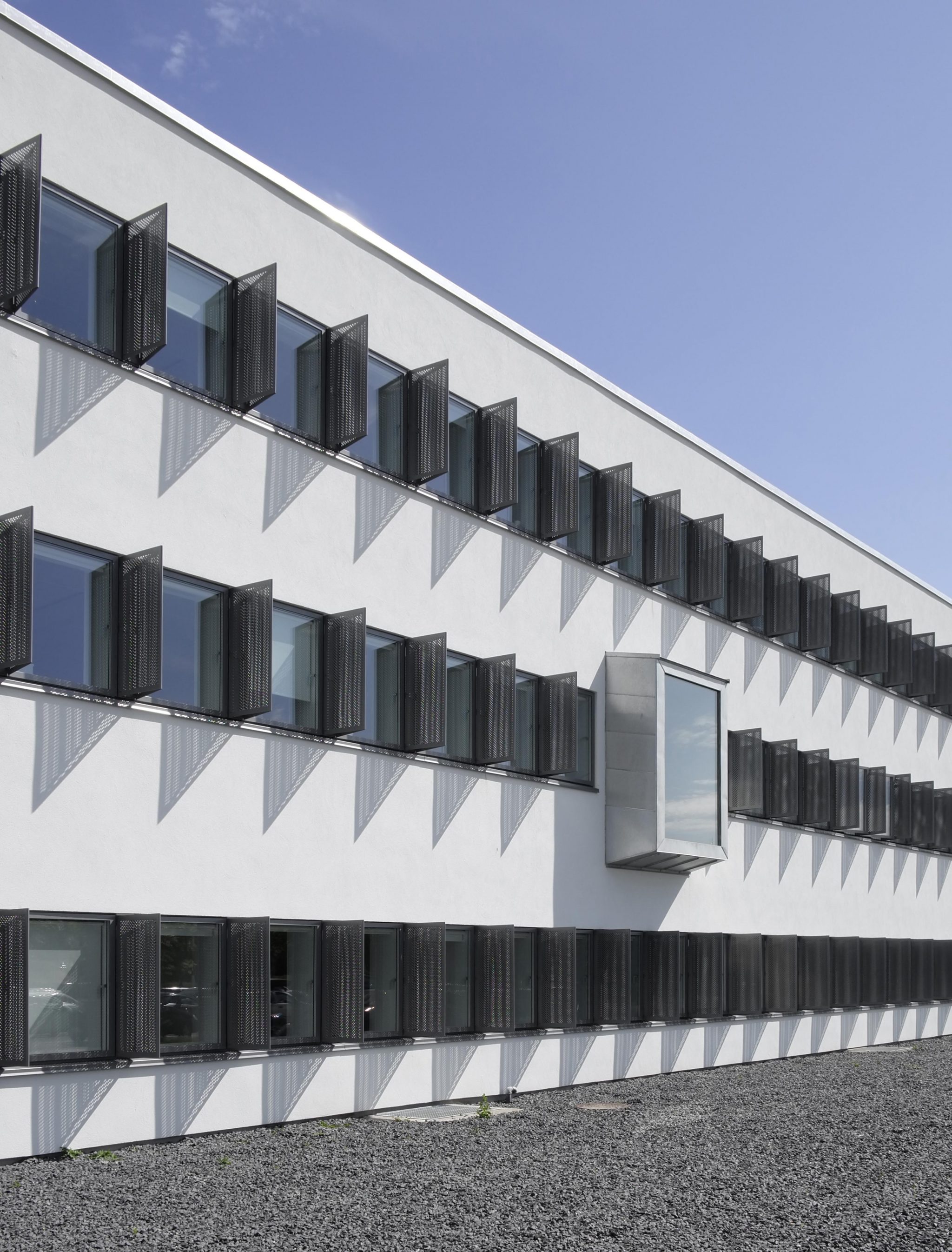 Lys-givende karnapper skaber nu en vekselvirkning samtidig med, at lysindfaldet fra de store vinduespartier er med til at skabe et godt arbejdsmiljø. Med renoveringen er en monoton og trist erhvervsbygning gjort til en attraktiv og dynamisk bygning