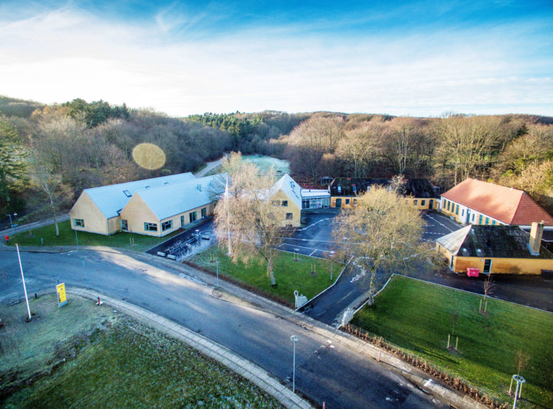 Materialeholdningen er hentet fra den nordiske palette, og med udgangspunkt i de eksisterende rammer. Den gule sten på forstanderboligen fra 1950’erne og den gule okkerfarve på de ældste bygninger. Der er arbejdet med robuste og naturlige materialer, der skal kunne holde til livets gang inde og ude, med patinering og slid af de mange brugere.