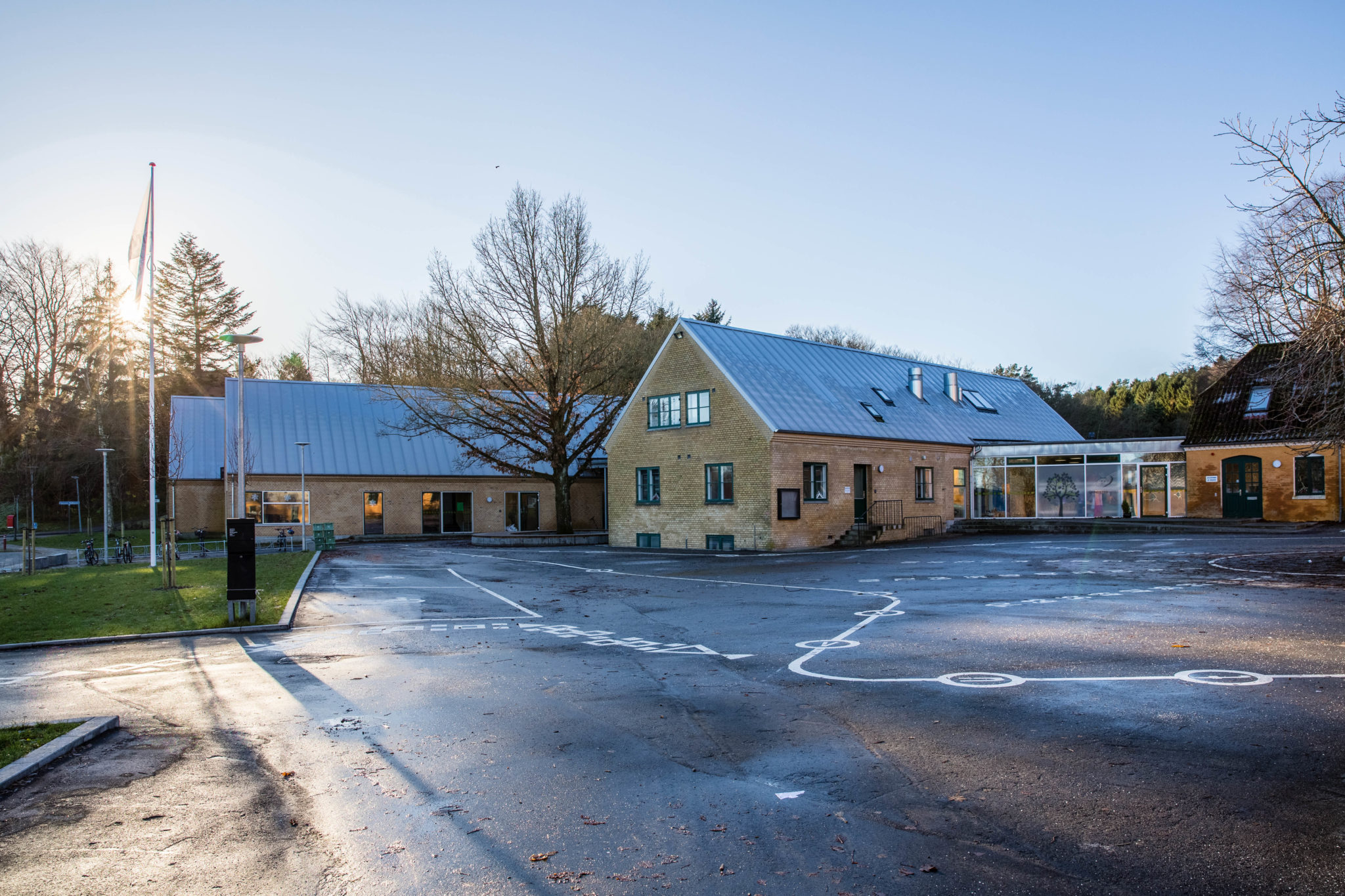 Skolens ledelse forklarer, at man afholder fælles morgenåbning og feriepasning med børnehaven, og at man nu har valgt at flytte fællespasningen til skolens lokaler, simpelthen fordi bygningerne er fede. Tidligere foregik fællespasning i børnehaven. Og netop samarbejdet med børnehaven giver super god mening, idet skolestart bliver meget lettere, når børnene kender skolen og de mennesker der færdes her.