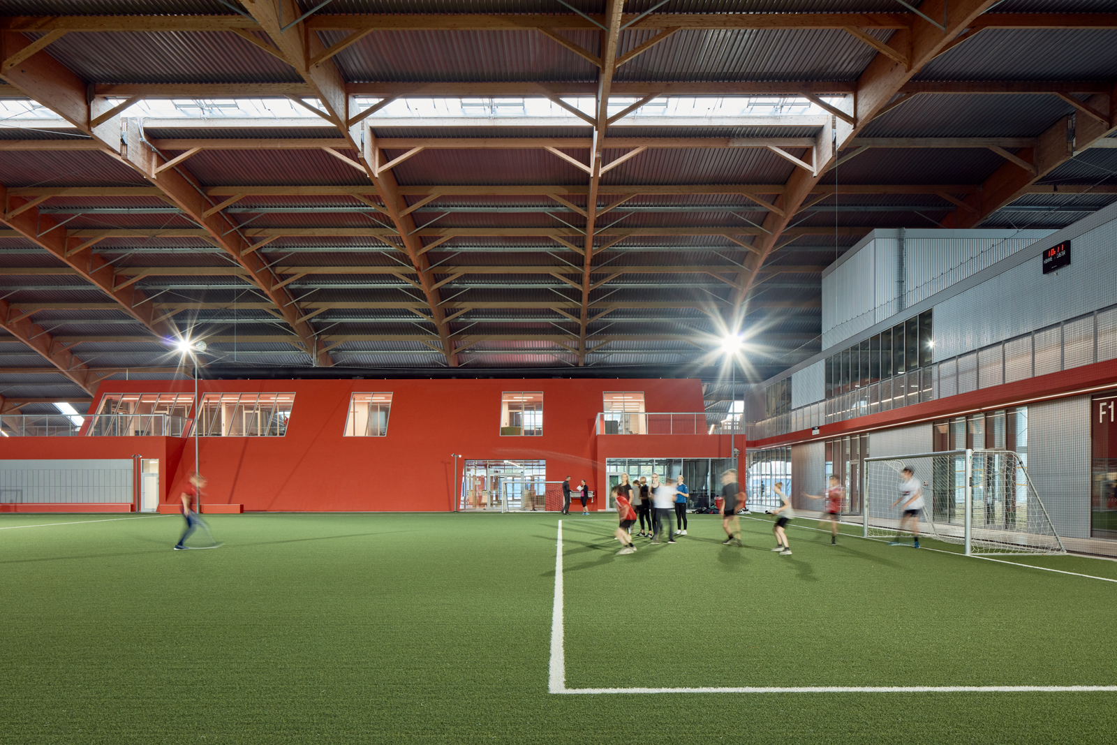Bygherre, Københavns Kommune, var meget ambitiøs, og det var fra starten meningen, at det ikke kun skulle handle om fodbold. Så en vigtig del af den indledende proces var en fire måneder lang brugerproces, hvor vi var i kontakt med Valby Idrætspark, Københavns Idrætsefterskole og ca. 12 forskellige klubber, både fodboldklubberne, en beachvolleyklub og flere andre.