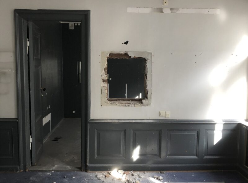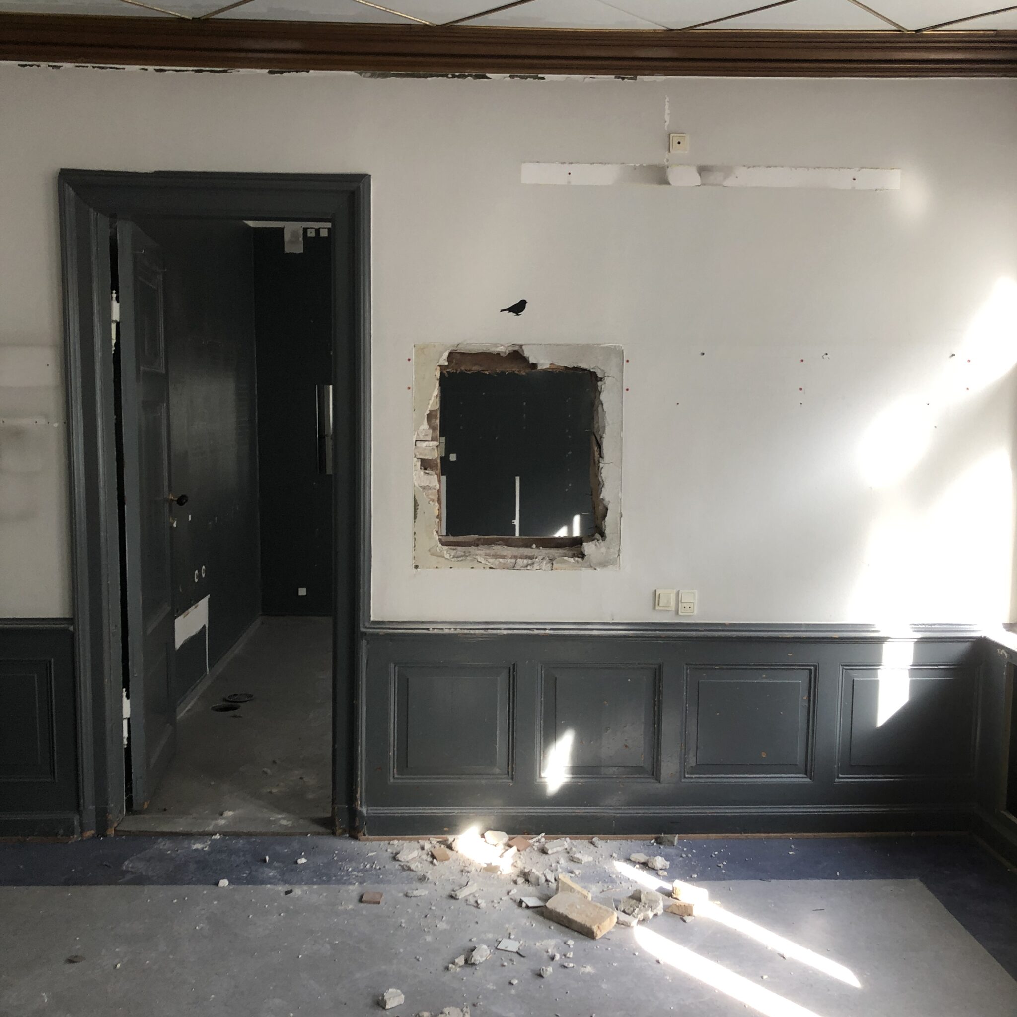 Alle indvendige og udvendige døre er blevet erstattet med en tro kopi af de oprindelige og detaljerede fyldningsdøre i traditionelle materialer, men udført efter nutidige brandkrav. Der er udført akustikpuds på loftet i baghuset, mens der er monteret akustikplader under bordene i forhuset, for at bevare det flotte eksisterende glasloft i denne del af bygningen.