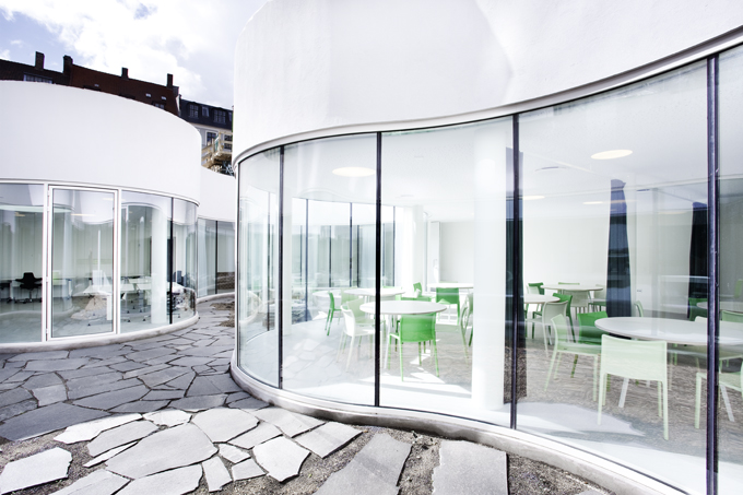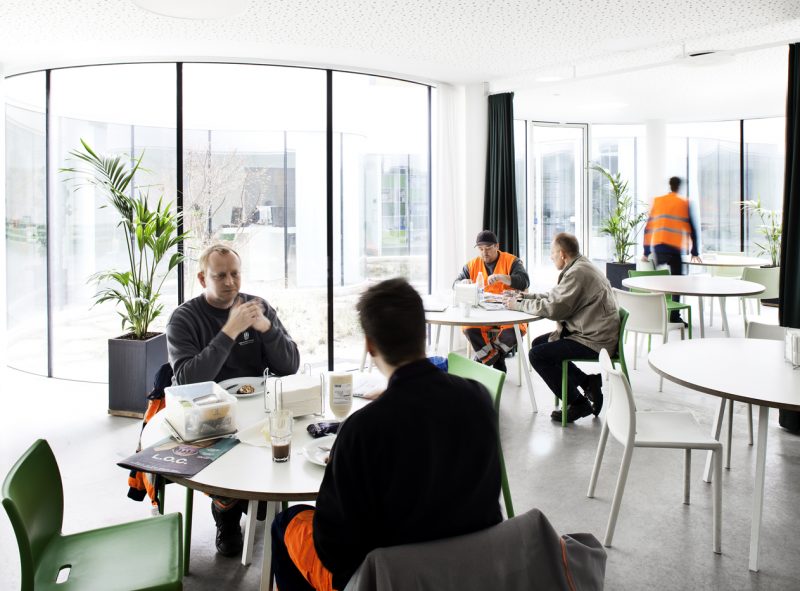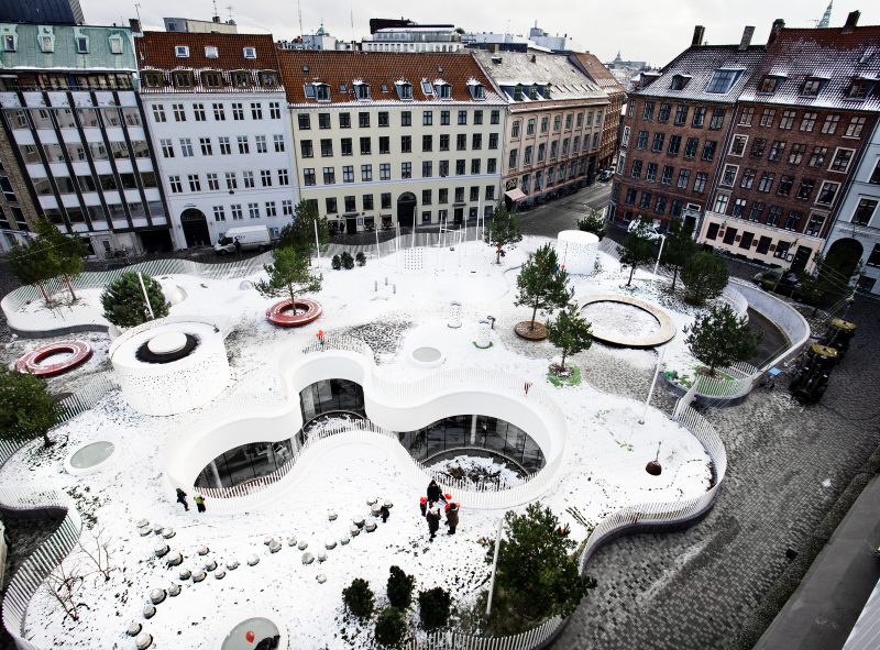 Men hvordan etablerer man nyskabende byggeri i en ældgammel bydel og fastholder respekten for det gamle? POLYFORM og Karres en Brands valgte simpelthen at bygge nedad i stedet for opad! Center for Renhold blev bygget ned i parkeringskælderen og på den måde blev der skabt der en helt ny type byggeri. Et landskabeligt kontorbyggeri uden vindturbulens, skygge- eller indsigtsgener ogfor at få mest muligt dagslys i de nye kontorer og mandskabsfaciliteter er alle husets primære funktioner placeret rundt om et åbent gårdrum. Atriummets bløde former lader lyset strømme ind i byggeriet og definerer samtidigt de unikke rum både inde og ude. Samtidigt er det nye legelandskab på Hauser Plads blevet et blødt, grønt afbræk fra den daglige trængsel og travlhed i byen – her er der plads til leg og bevægelse! – Og til at de voksne kan nyde livet med en kaffe fra caféen ved siden af.