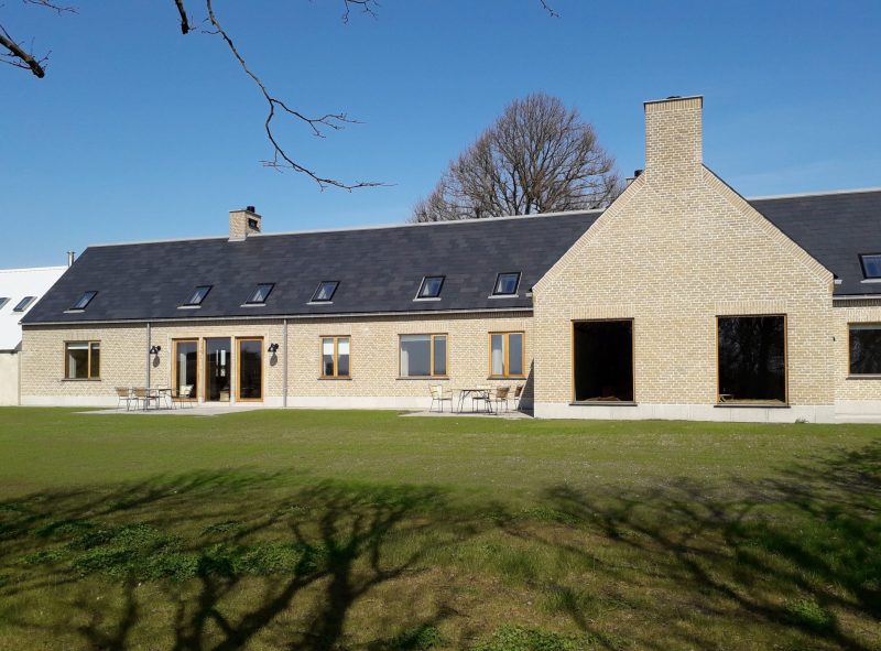 Det nye stuehus blev opført samme sted som det gamle, så fortællingen om gårdens bygningsmiljø videreføres. Stuehuset er opført i en arkitektur og byggeskik, der digter videre på det, vi kan bruge traditionelt håndværk til i dag. Et længehus med gennemtænkt detaljering og i gode materialer med lang holdbarhed. Traditionelle elementer i form af skorstene, der betjener ventilation, pejse og emhætter, fordøre vendt mod gårdspladsen, massive granitsokler og skifertag. Indvendigt er huset fleksibelt indrettet og har synlige konstruktioner i egetømmer. Alt murværk er opmuret i kalkmørtel og indvendigt behandlet med diffusionsåbne silikatmalinger.