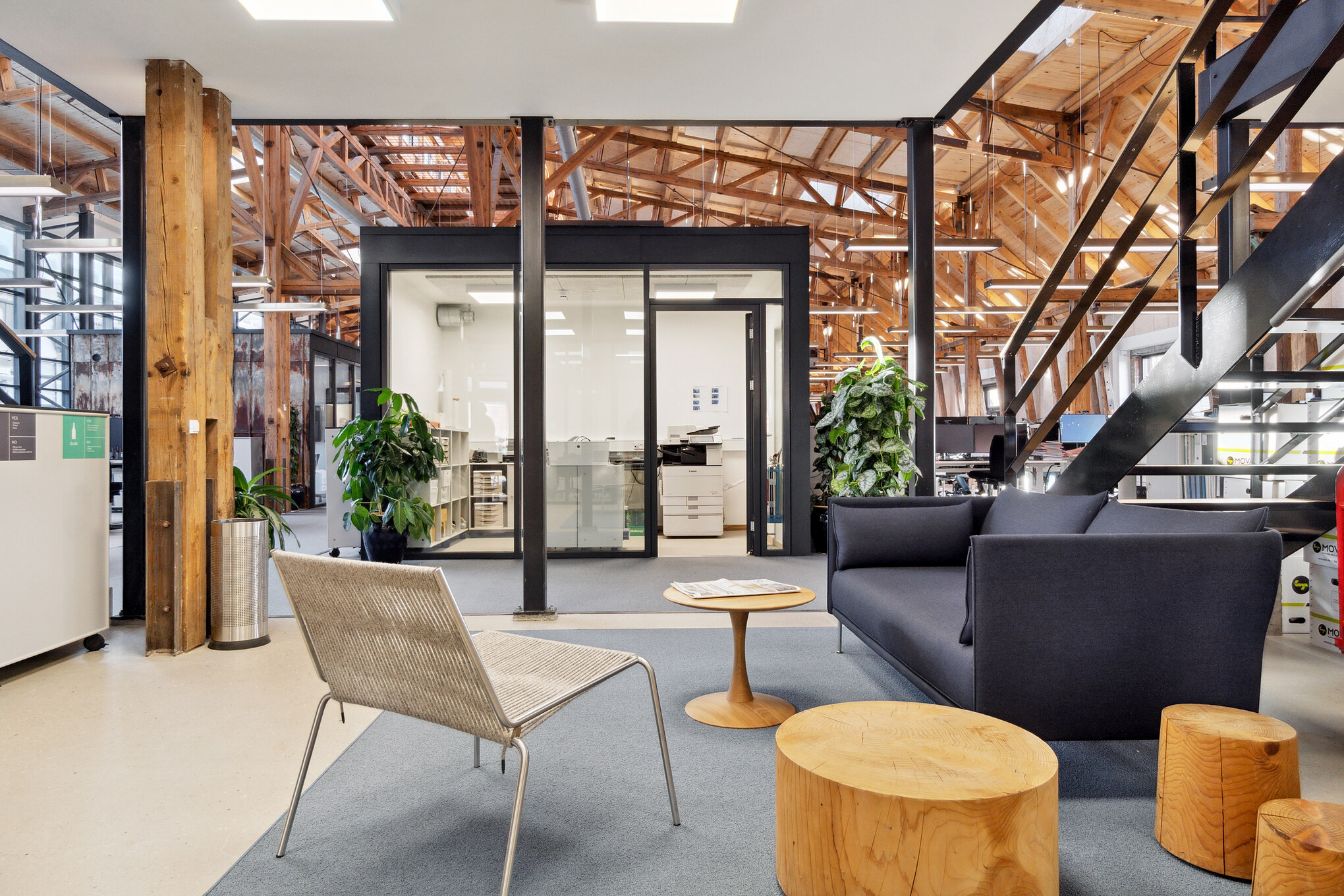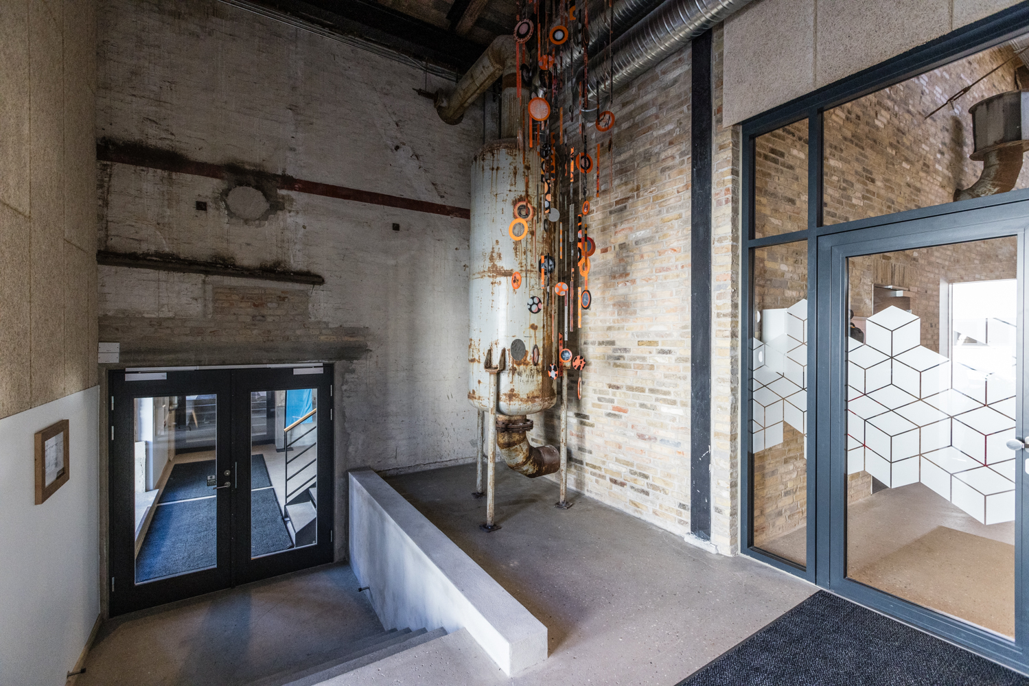Bygningens lejemål fremstår åbent og imødekommende, hvilket inviterer til liv og aktivitet. Den oprindelige industrielle atmosfære er bevaret, hvilket skaber en unik stemning, der understøtter bygningens historie.