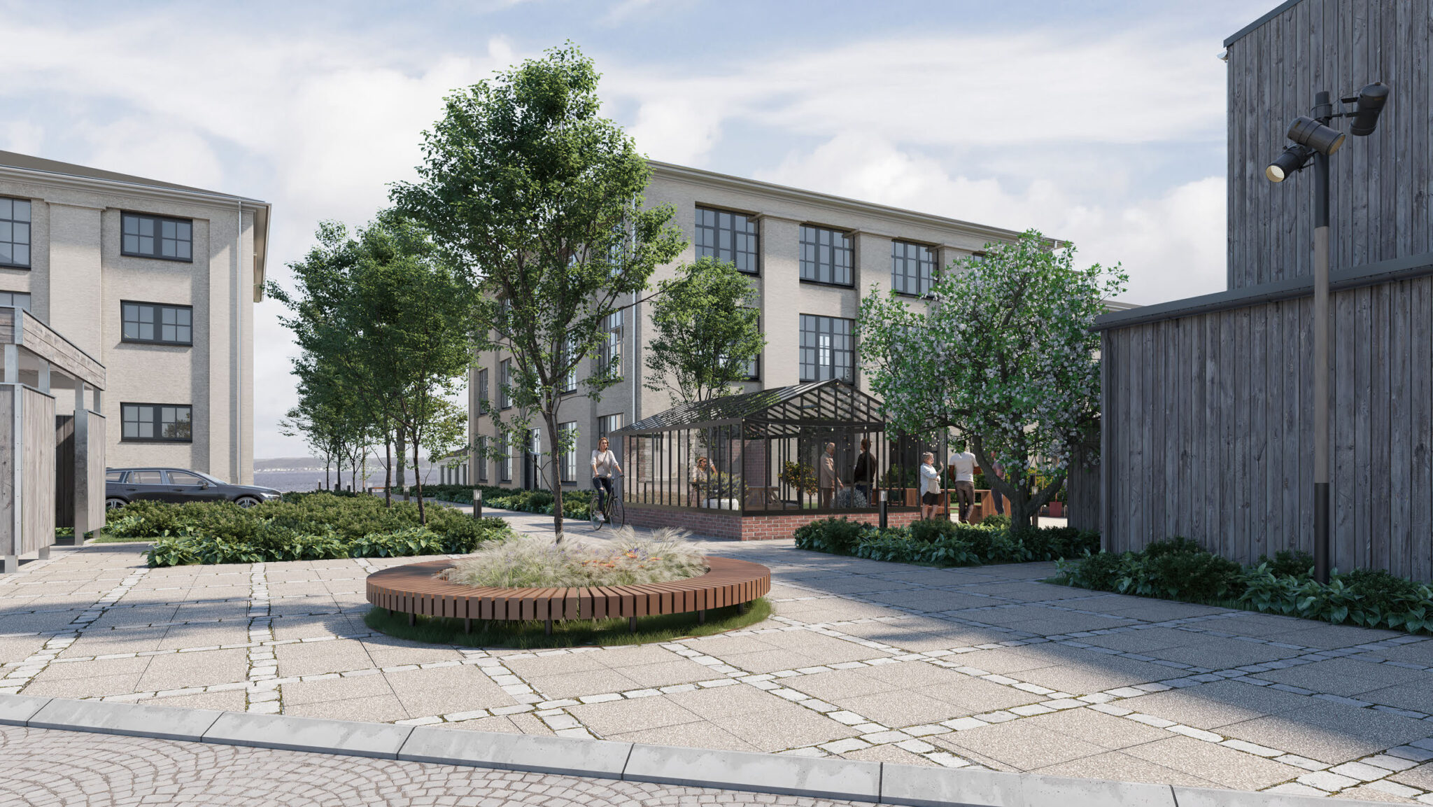 Fællesskabet og den sociale dimension er også vigtige emner, og ambitionen er at skabe et levende fællesskab, der både skaber de optimale rammer for at få arbejdsliv og fritidsliv til at hænge sammen. Ønsket er at skabe øget livskvalitet for både beboere og kontorbrugere samt for både naboer og foreninger i området.