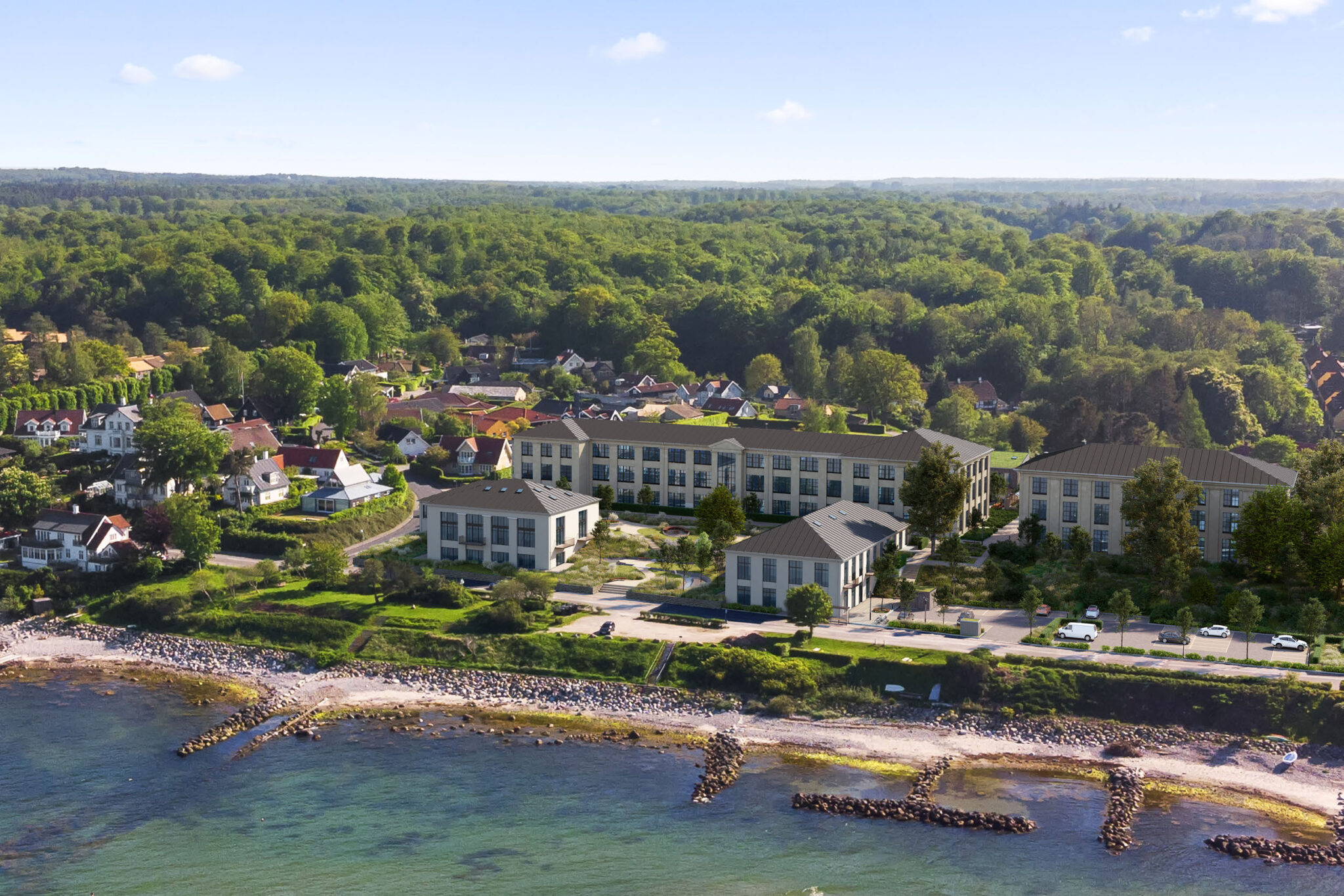 Løsningen blev ”fællesskab i første række”, hvor ambitionen først og fremmest var at skabe et levende fællesskab som den optimale ramme om et sammenhængende arbejdsliv og fritidsliv. Tilmed i første række til både hav og natur.