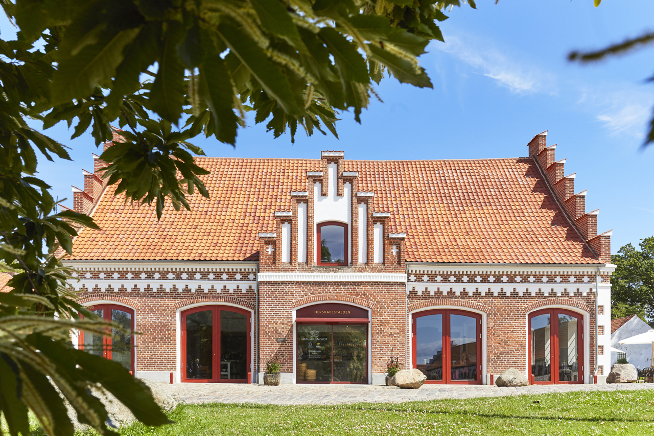 Herskabsstalden er en indbydende og lys bygning, der er transformeret med transparens for øje, så ude og inde mod hovedalléen smelter sammen og skaber et summende liv af gæster. Bygningen rummer gode oplevelser for gæsten. Det arbejdende køkken og food lab er åbent for beskuelse, ligesom bygningens fornemme tagkonstruktion formidles i et stort glasparti i loftet og den gamle herskabsstalds båse er bevaret og tidligere tiders farver er dukket op.
