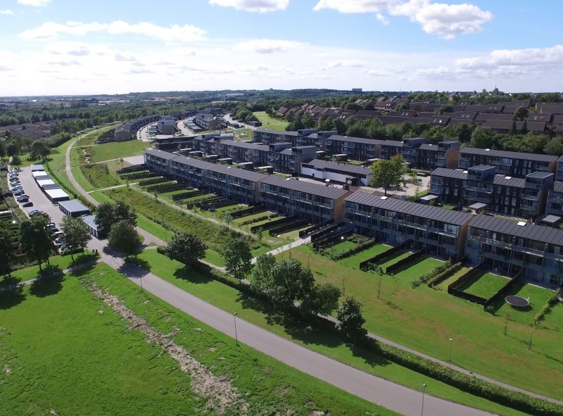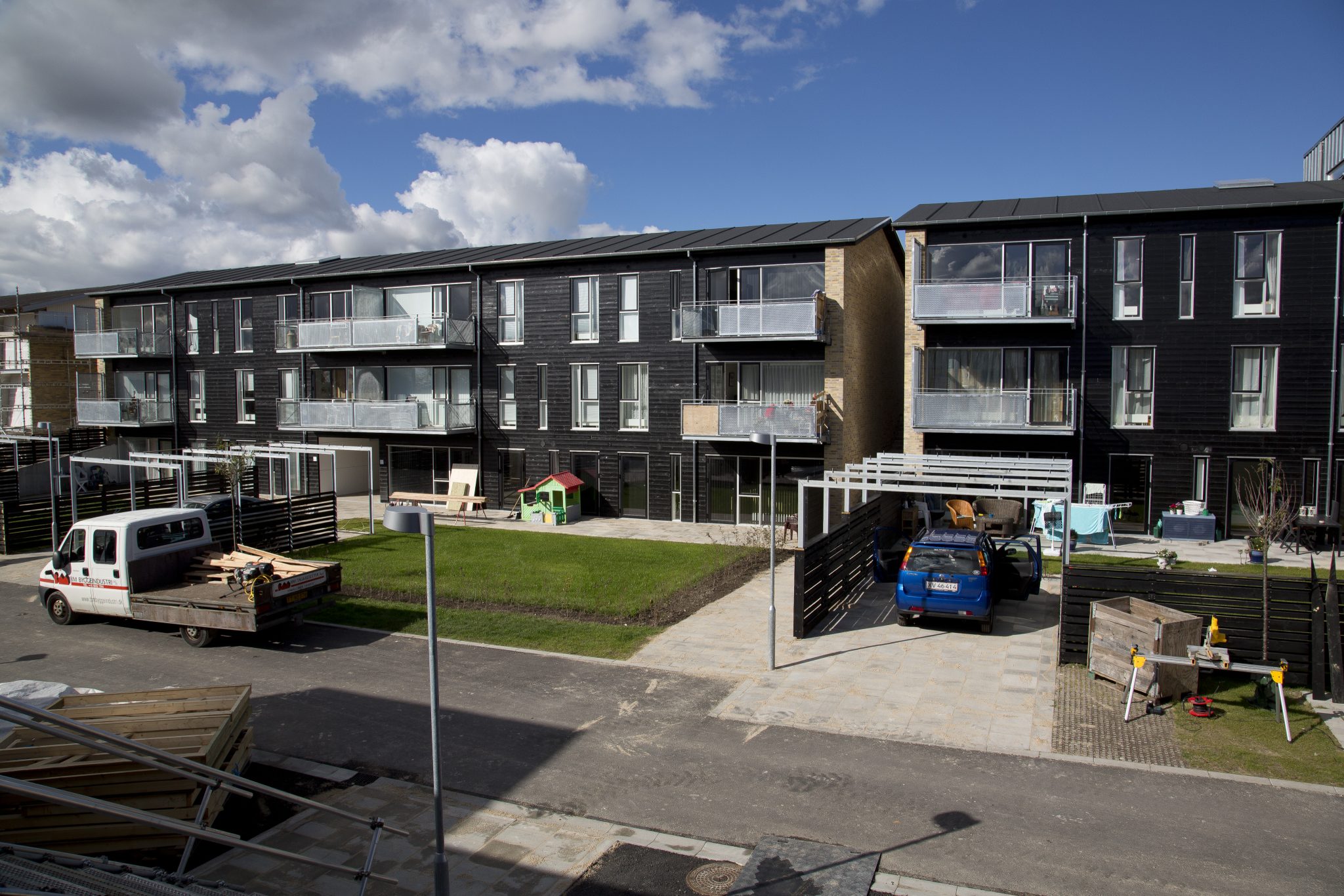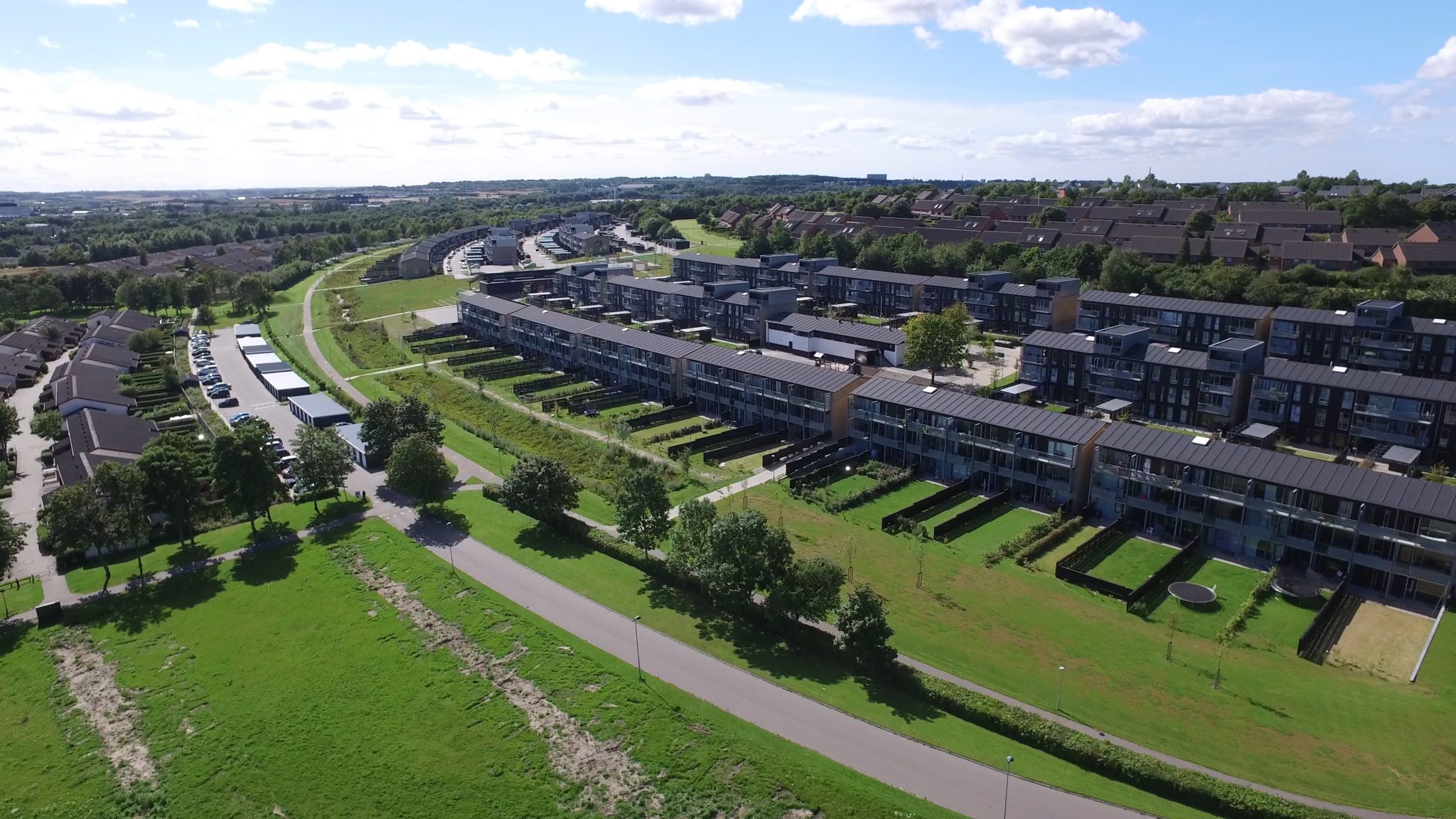 – En række bæredygtighedsinitiativer er blevet gennemført f.eks. Lokal Afledning af Regnvand (LAR) samt el-delebiler for beboerne.