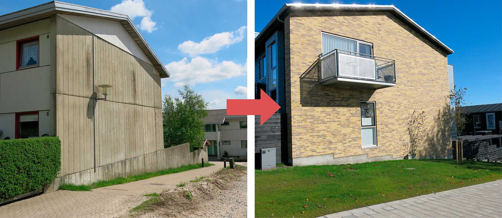 Området har fået ny identitet med moderne arkitektur og facader i træ. Påbygninger på tage har skabt synlighed og god udsigt for beboerne. Kantzoner med gårdhaver samt boliggader med plads til både parkering, leg og ophold har skabt et byliv i forstaden.
