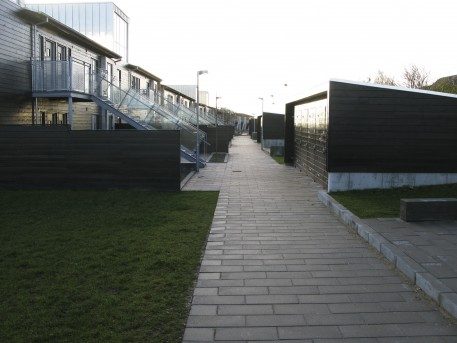 De 370 boliger udgør et tidstypisk alment boligbyggeri fra 70’erne. Renoveringen forandrer det anonyme boligområde til et levende, socialt bæredygtigt kvarter, hvor landskabelige elementer gør det enkelt at finde vej, og åbne forhaver giver identitet til stedet.