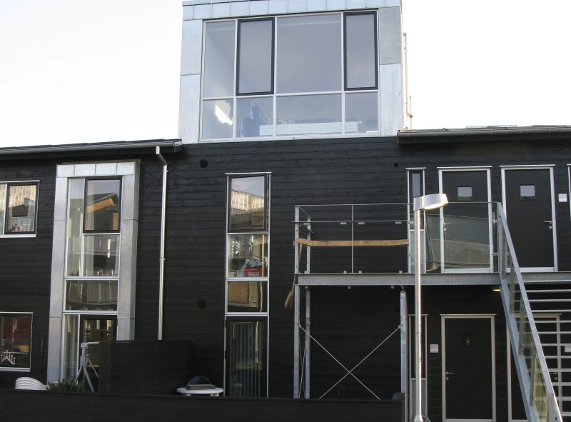 Facaderne beklædes med træ og indrettes med store vinduespartier, franske altaner og karnapper, der giver markant bedre lys- og udsigtsforhold.