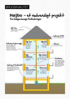Projekt Højbo omfatter hele paletten af boligrenovering: områdefornyelse, 0-energi og beboeradfærd. Renoveringen afspejler Frederikshavn Boligselskabs energipolitik som bl a omfatter en reduktion af energiforbruget med 75% før 2020. Det bæredygtige pilotprojekt Højbo er en bundsolid nødvendig test.
