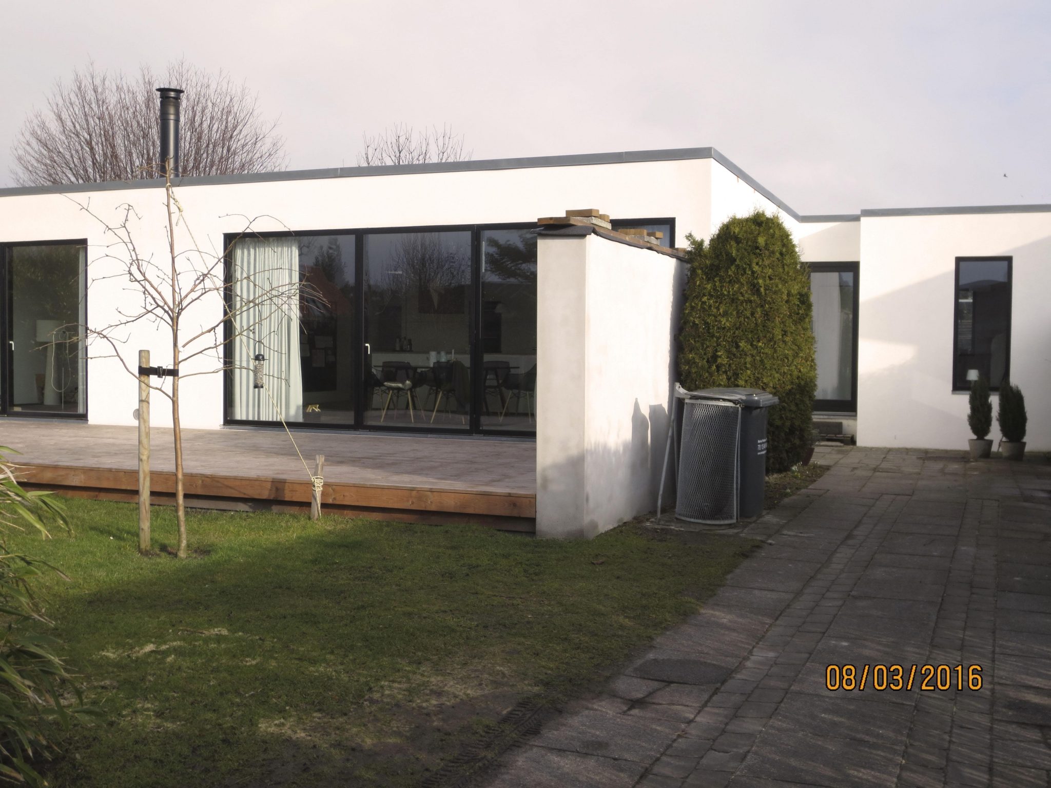 De murede vægge fra ombygningen i 1967 er bevaret, men ellers er alt tidligere sommerhus og udestue nedrevet. Ny isolering i gulve, vægge og tag. Energivinduer, gulvvarme, nyt naturgas og solceller. Garagen er inddraget i husets arkitektoniske udtryk og bruges som bufferzone – arbejdsrum, værksted etc.
