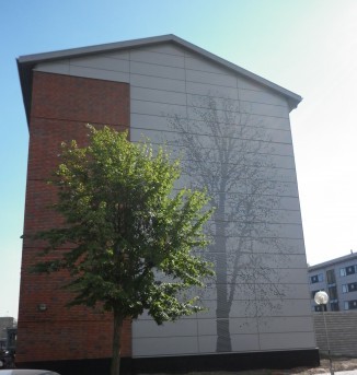 Udenomsarealerne blev desuden forbedret med ny beplantning, belægninger, skure samt kunstprojekt på gavle af blokkene.