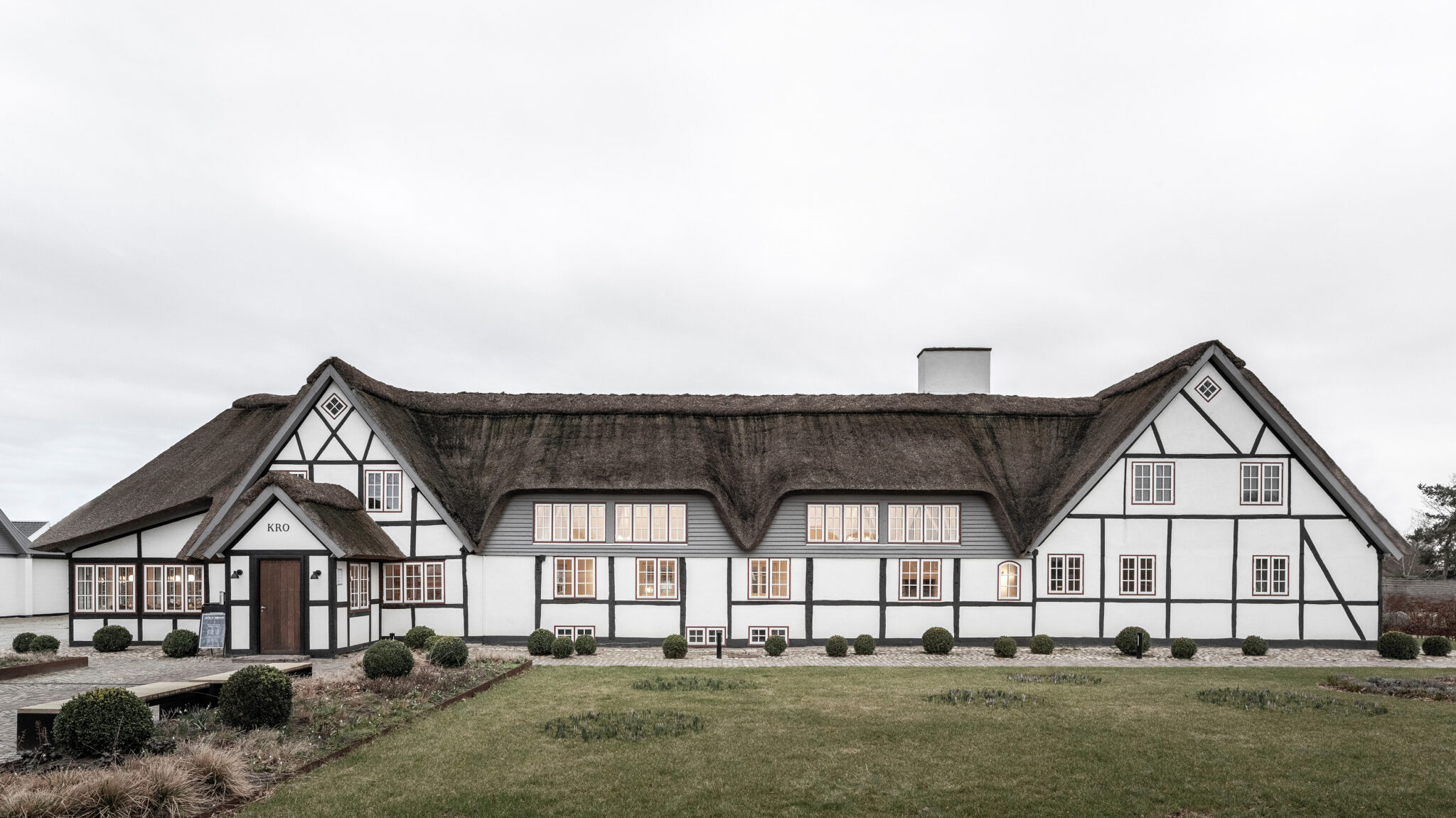 -Den oprindelige kro er en smuk og charmerende ejendom. Det er en af den slags historiske perler, man nemt forelsker sig i. Vi besluttede hurtigt, at vi skyldte bygningerne at få det allerbedste frem i dem igen, fortæller Arkitekt Simon Skriver fra tegnestuen WE architecture, der har stået i spidsen for reno-veringen af den noget slidte ejendom.