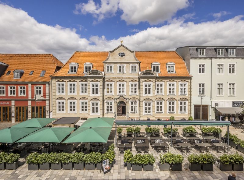 Hotellet ligger midt i Horsens bymidte og med sin unikke placering skaber hotellet byliv midt i gågadenettet hele døgnet. Der vil altid være folk på hotellet og lys i vinduerne. Hotellets udeservering vil ligeledes summe af liv i gågaden.