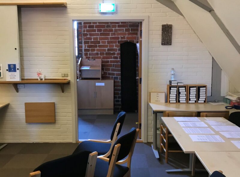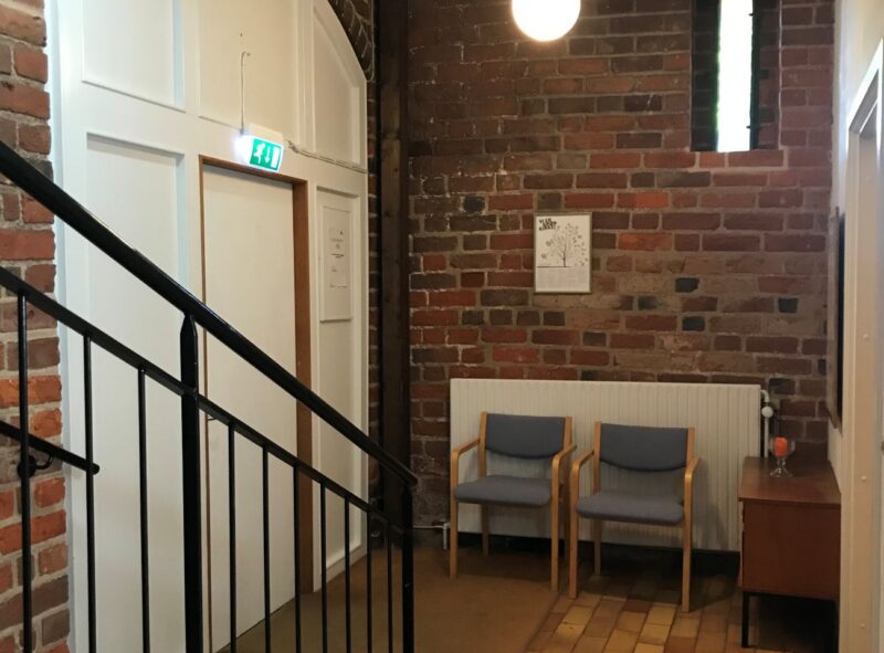 Efter menighedsrådets ønske om et nyt sognehus er kirkeladen restaureret og nyindrettet til et moderne sognehus.