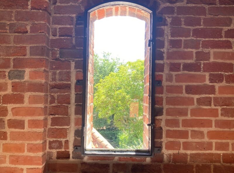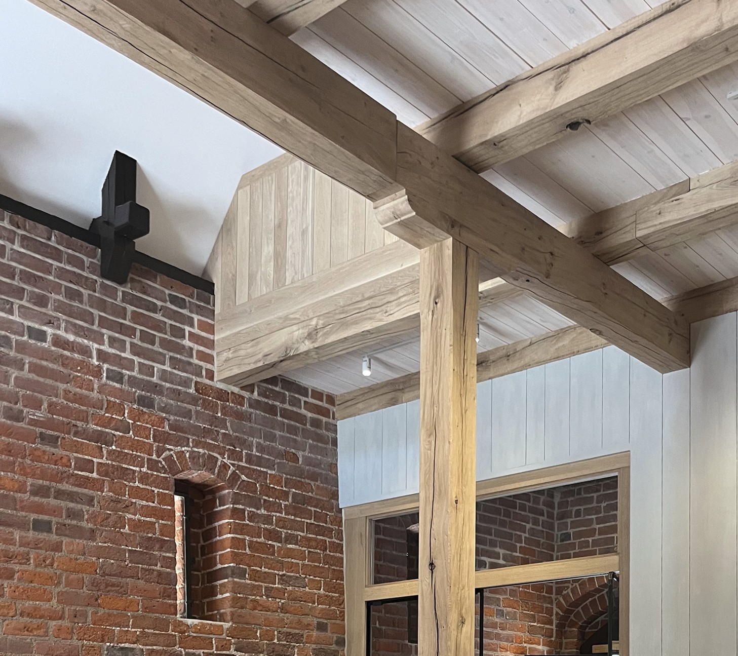 En ny trækonstruktion ved nordgavlen rummer trappe, elevator og vindfang og synliggør den oprindelige rumstruktur. Munkestensmurværk og den gotiske tagstol er igen aflæselige, og materialeholdningen er enkel og traditionstro med egeplankegulve og linoliemalede overflader.
