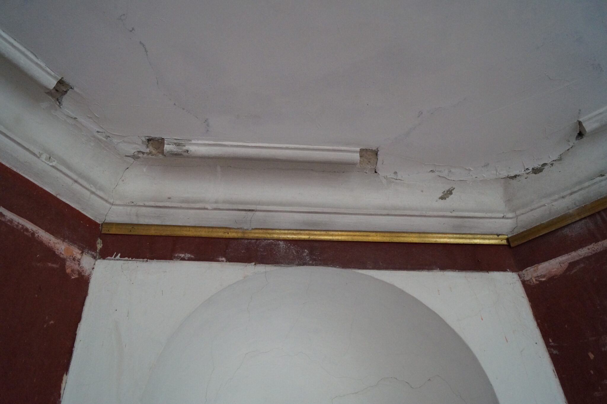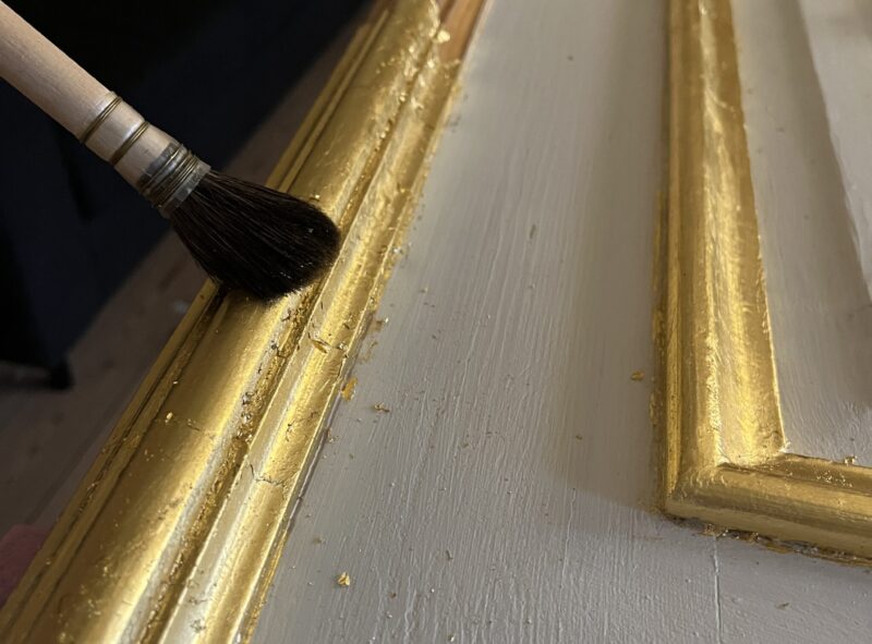 Genskabelse af bladguldsstuen krævede restaurering af stuens stuk og en analyse af listerne til bladguldet og et massivt arbejde for at skabe et bæredygtigt underlag til shellak, guldgrund og bladguldet. Heidi Zilmer førte os trygt gennem denne fase.