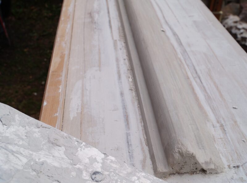 Et lavpraktisk eksempel: Veksebo saver douglas til de udskæringer, der skal genskabes. Men hvad er egentlig bedst ifht. holdbarheden af den påstrøgne linoliemaling? Skal tømmeret været høvlet eller skåret? Et på mails frem og tilbage med Thor Grabow og vi kommer frem til, at træet har den største overflade, når det ikke høvles og dermed har linolien større hæftning og holdbarhed.