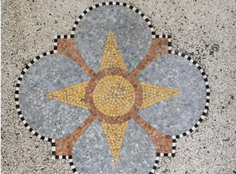 Genetableringen af terrazzogulvet i husets oprindelige badeværelse foregik med lup, hvor selveste Enzo Odorico talte blandingen af marmorskærver i den oprindelige blanding, så vi kunne genskabe terrazzoen 1:1 i materialer og udførelse.