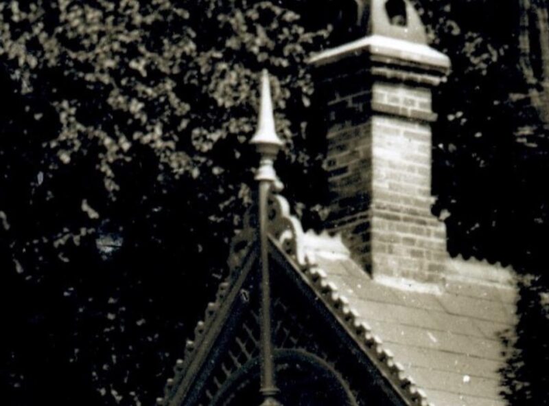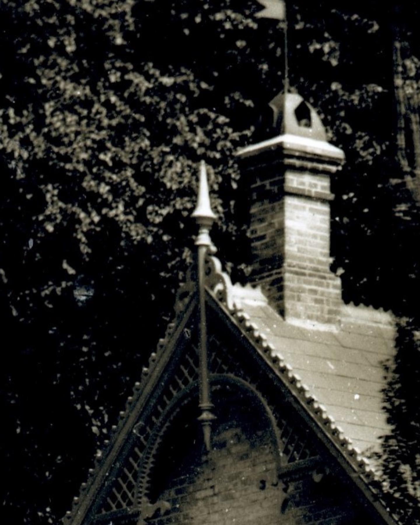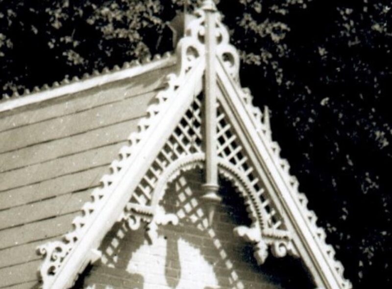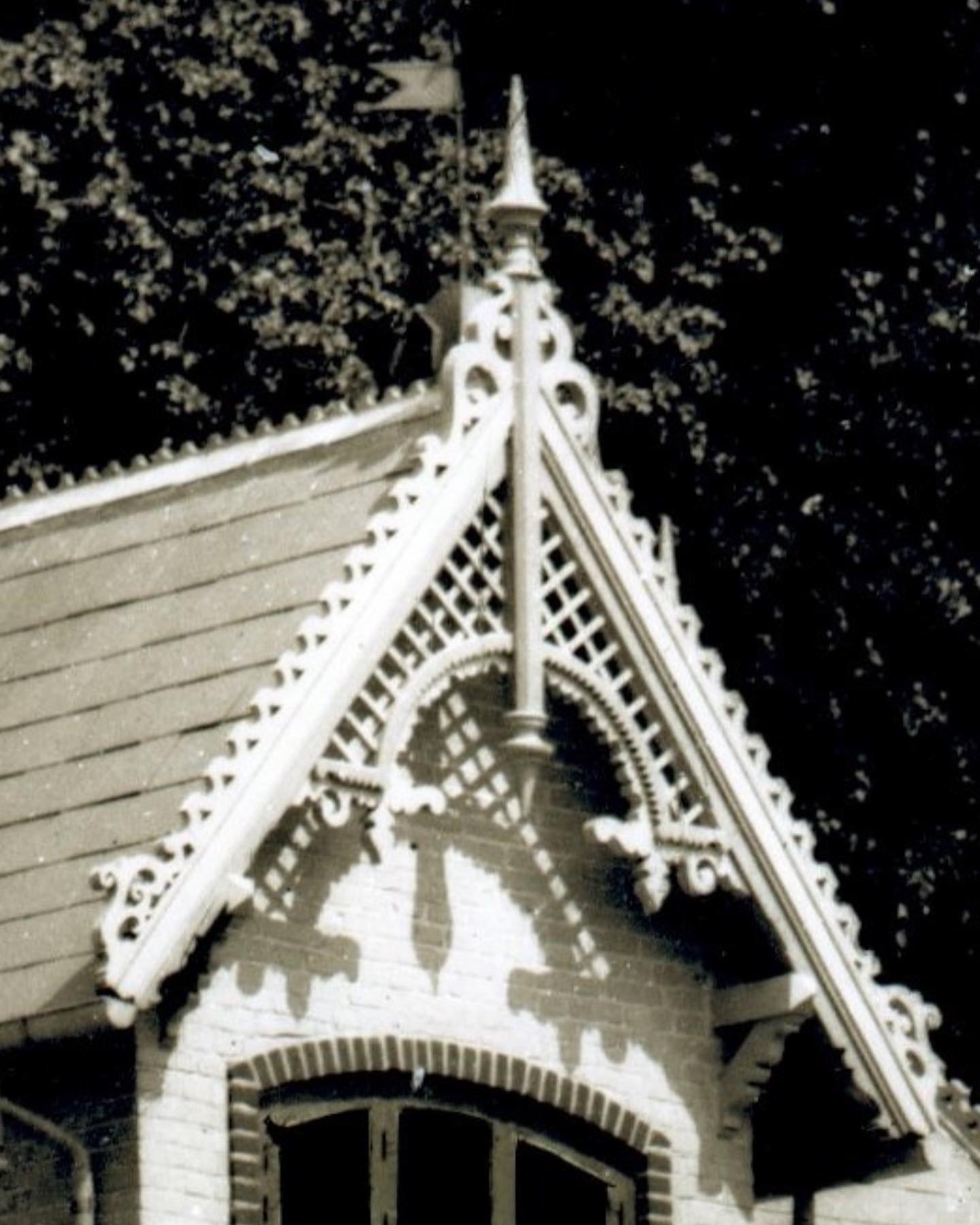 Den nordvendte træudskæring har været beskyttet med linoliemaling og placeringen mod nord har beskyttet mod solen. Det er lykkedes os at bevare og restaurere den, således at 80% af lige denne udskæring er oprindelige og 135 år gammel. Den er skrabet ren for gamle linolierester, malet med ny linolie og sat op igen i nye spær, midterpost og med nyt gitter. Der hvor bevaring er muligt, så har det naturligvis haft den højeste prioritet. Dernæst 1:1 genskabelse af alle øvrige detaljer - i samme materialer.