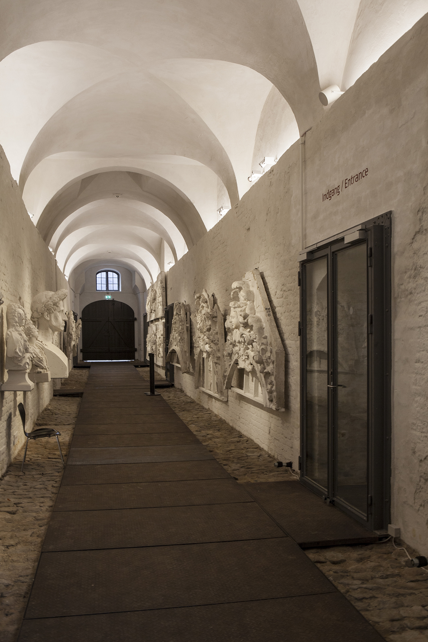 Arkitema Architects har i et nært samarbejde med Styrelsen for Slotte og Kulturejendomme stået for ombygningen af Christian d. IV\\\’s Bryghus til lapidarium. For at gøre huset tilgængeligt er der udført ramper og gangbroer i stål, der forbinder de forskellige udstillingsrum. Integreret i disse er der belysning og føringsveje for tekniske installationer. Ligeledes er udstillingsområderne blevet forsynet med glasdøre, der muliggør, at de oprindelige træporte kan stå åbne, således at skulpturere også kan ses, når udstillingen er lukket. Belysning og iscenesættelse af skulpturerne er sket i samarbejde med lysdesigner Jesper Kongshaug og scenograf Rikke Juellund, mens skulpturudvælgelsen er sket af Mette Marciniak fraStyrelsen for Slotte og Kulturejendomme.