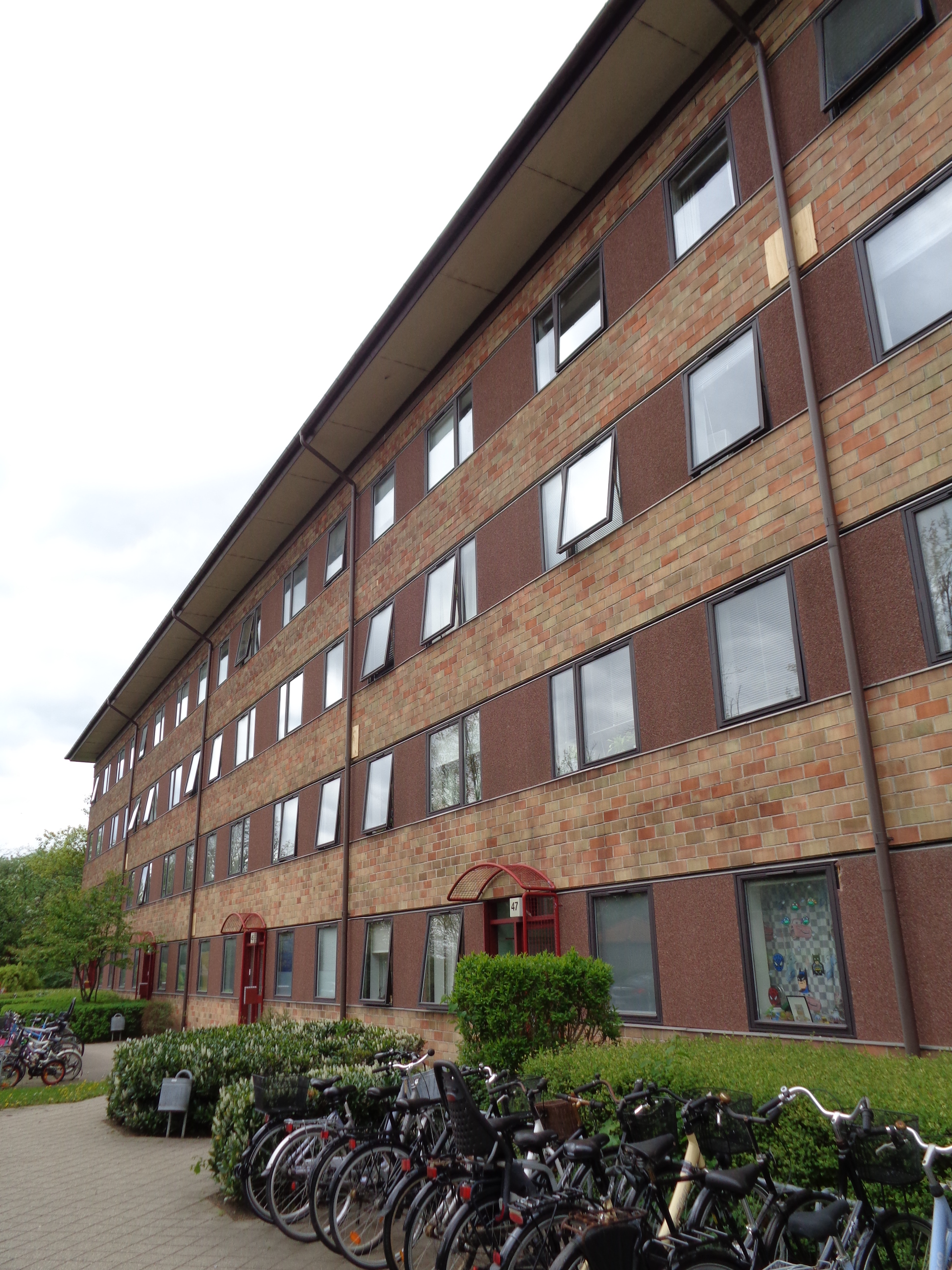De fire blokke er udformet som lange, ensartede stokke i 4 etager, med boligerne øst-vest orienteret. Alle 248 boliger er ensartede 3-værelses boliger uden altaner.