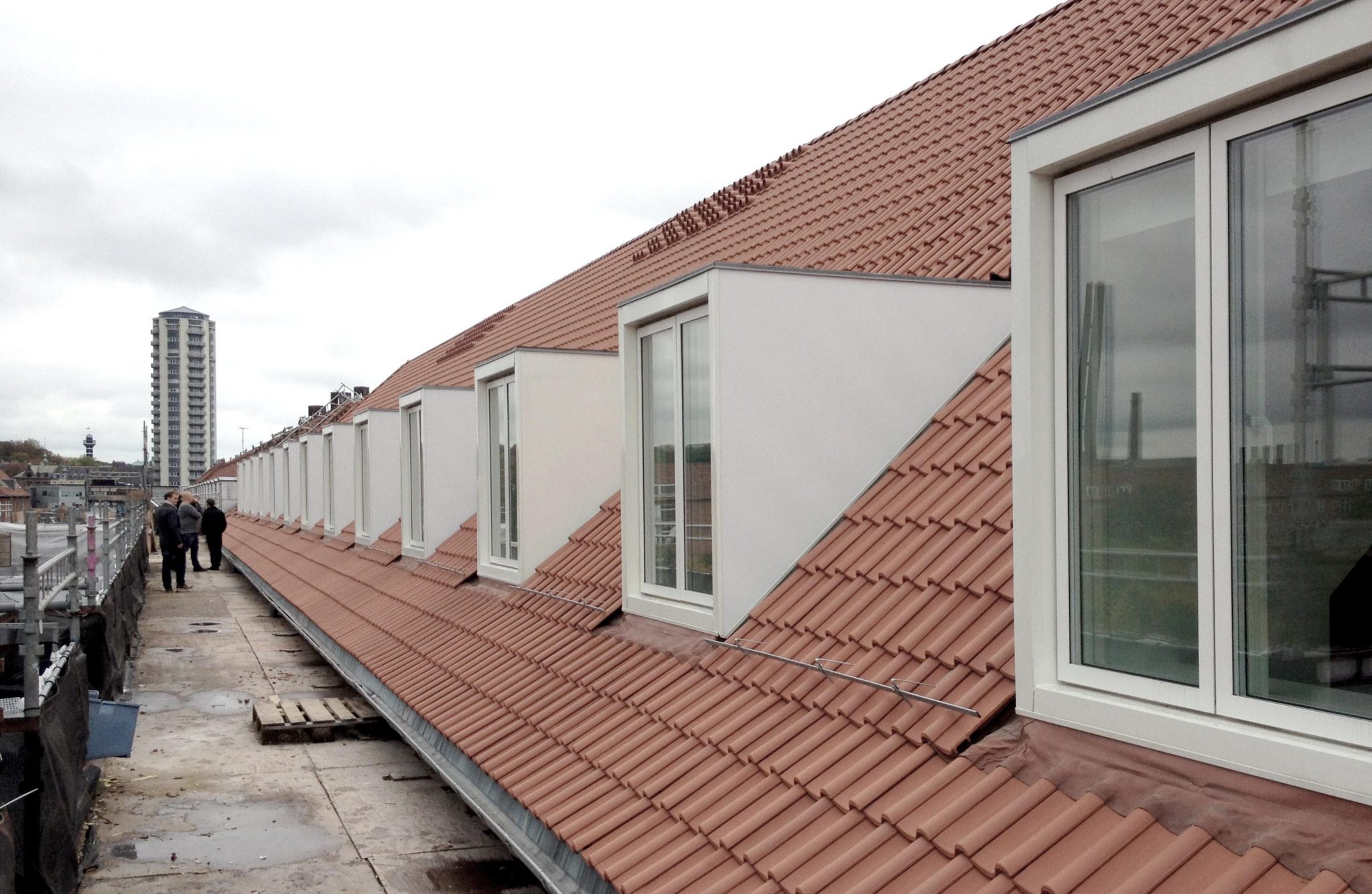 Udformningen af den nye kvisttype styrker den samlede byrumsoplevelse. Det røde tegltag og den hvide kvistbeklædning skaber samspil med nabobygningerne, som er udført i røde teglsten med diverse hvide detaljer, fx vinduesfalse, franske altaner og kviste.