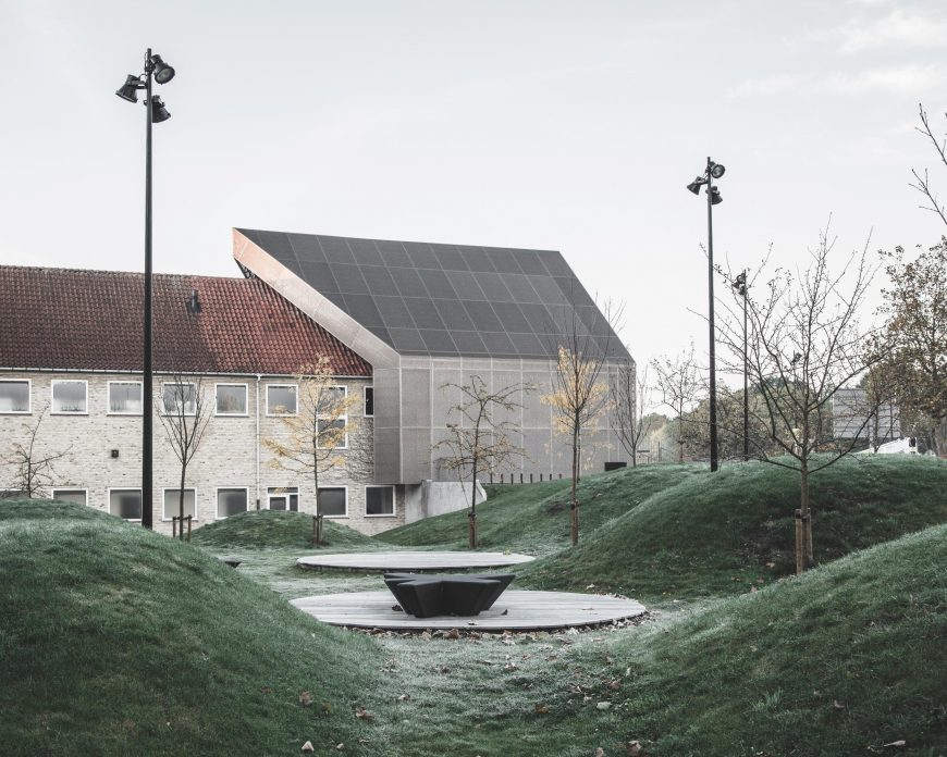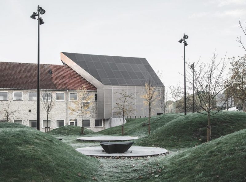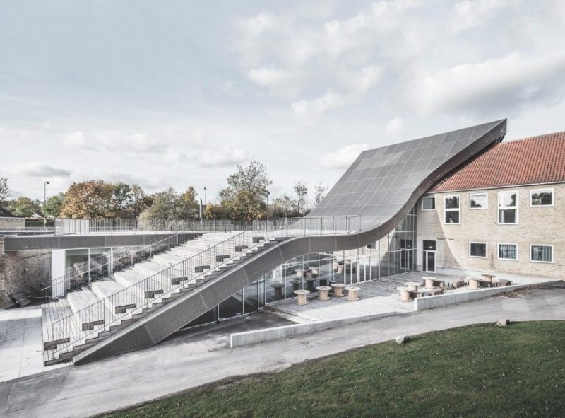 Bygningen forbinder kulturcenter Mariehøjs eksisterende funktioner.
