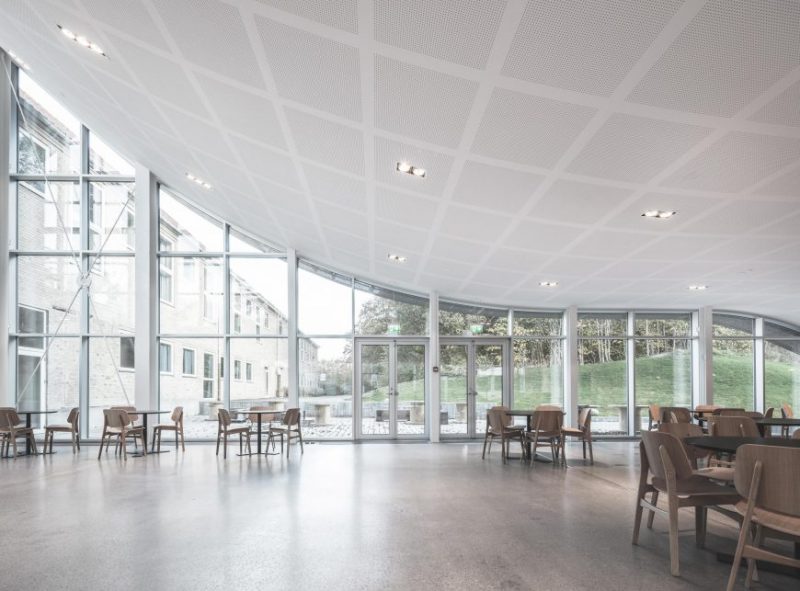 - Lofter er udført i gips med felter for akustik.