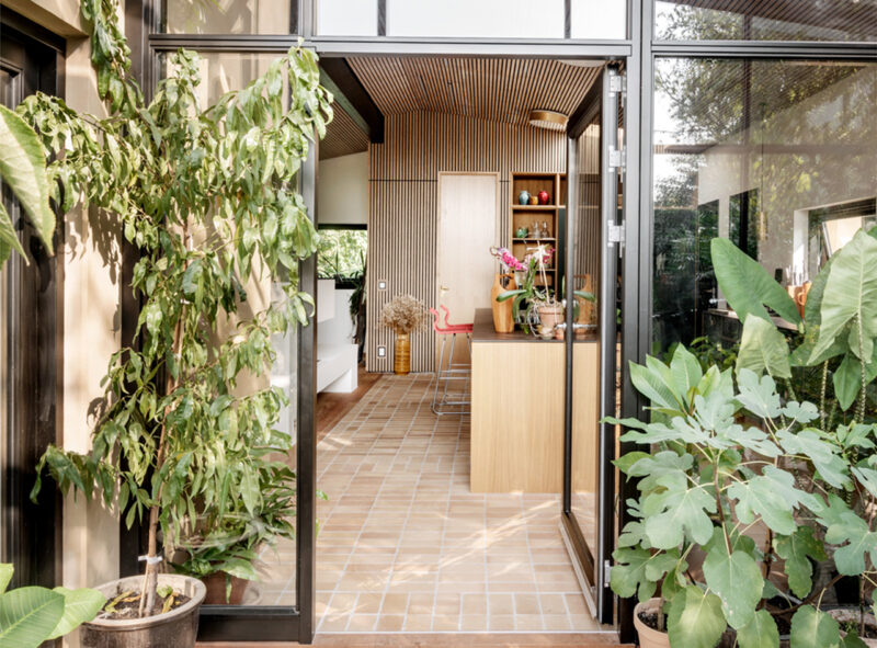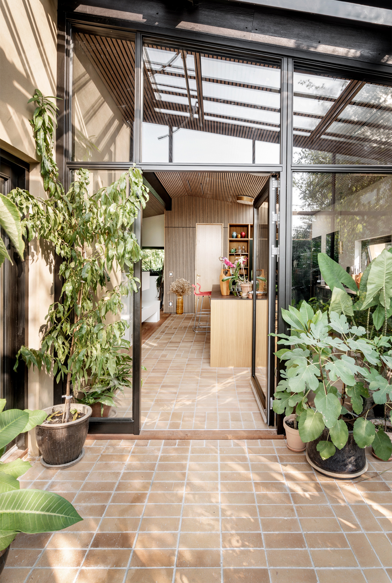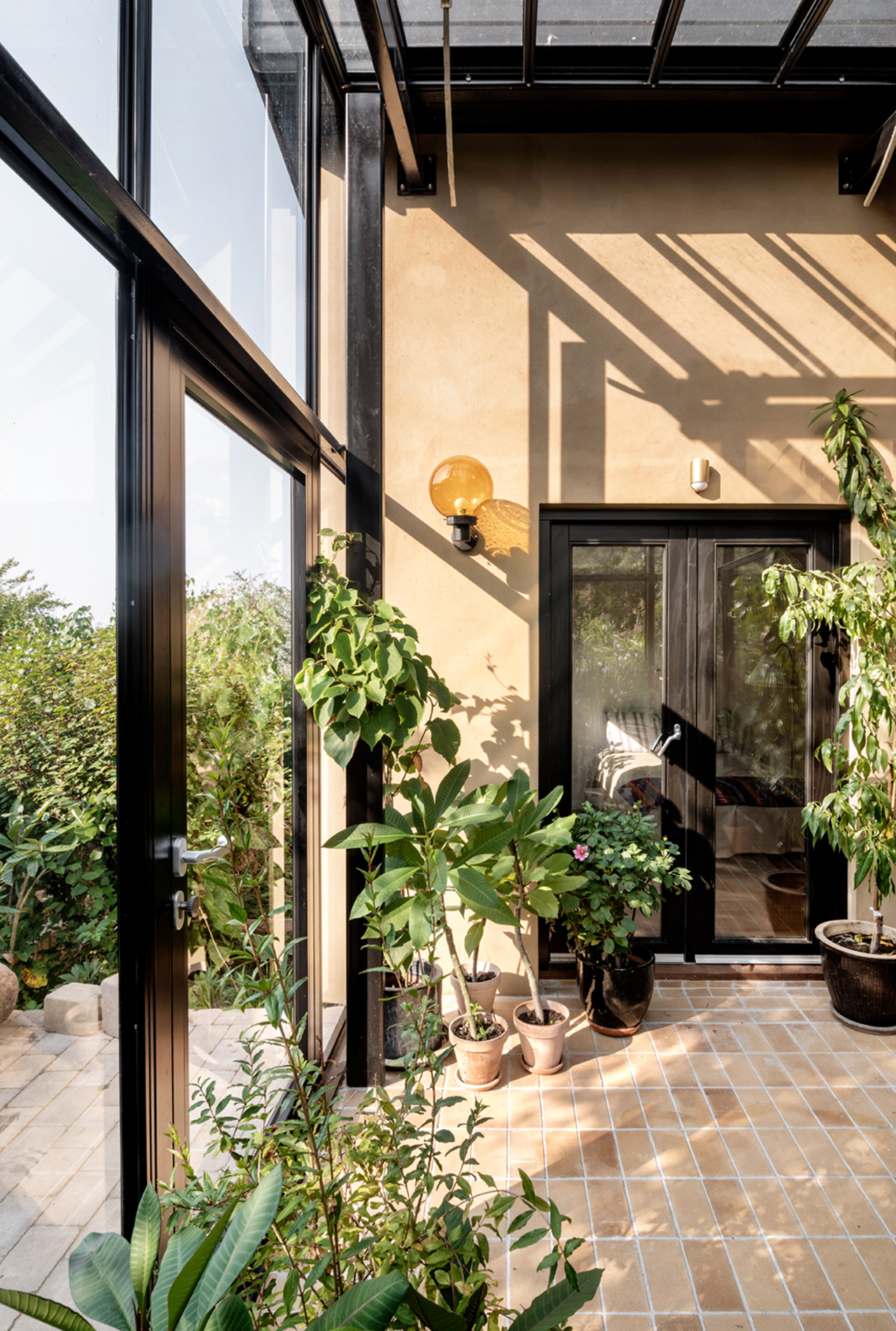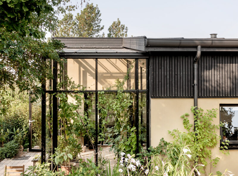 Til den eksisterende bolig er tilføjet en mindre tilbygning i form af et orangeri. Tilbygningen rummer flere funktioner og typologier, og de få ekstra kvadratmeter giver maksimal værdi til boligen. Orangeriet muliggør dyrkning af egne grøntsager og overvintring af planter samtidig med, at det fungerer som vindfang og entré til boligen. Det bliver en grøn mellemzone, der skaber en kobling mellem ude og inde. Den gængse opfattelse af en entré udfordres, og resultatet er et rum, der sender lys ind i boligen og giver en grøn velkomst.
