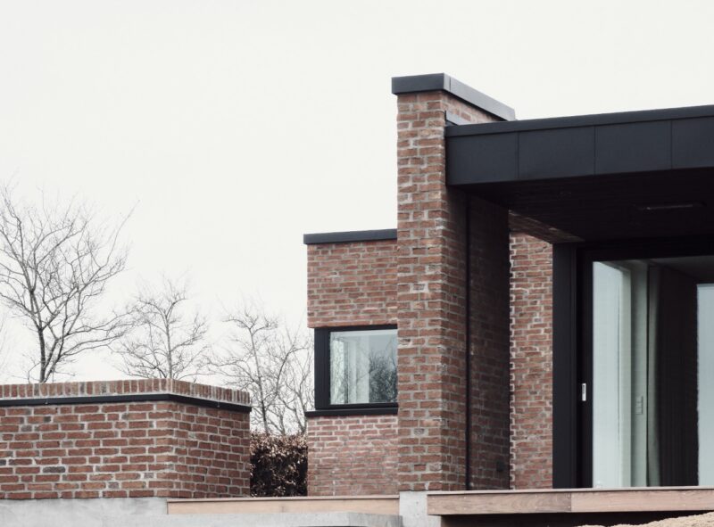 Teglfacaderne på huset er blevet omfuget – sten er fjernet nogle steder og genbrugt igen andre steder. Alene ved at omfuge har huset fået et flot løft og man bliver i tvivl om huset faktisk er nyt.