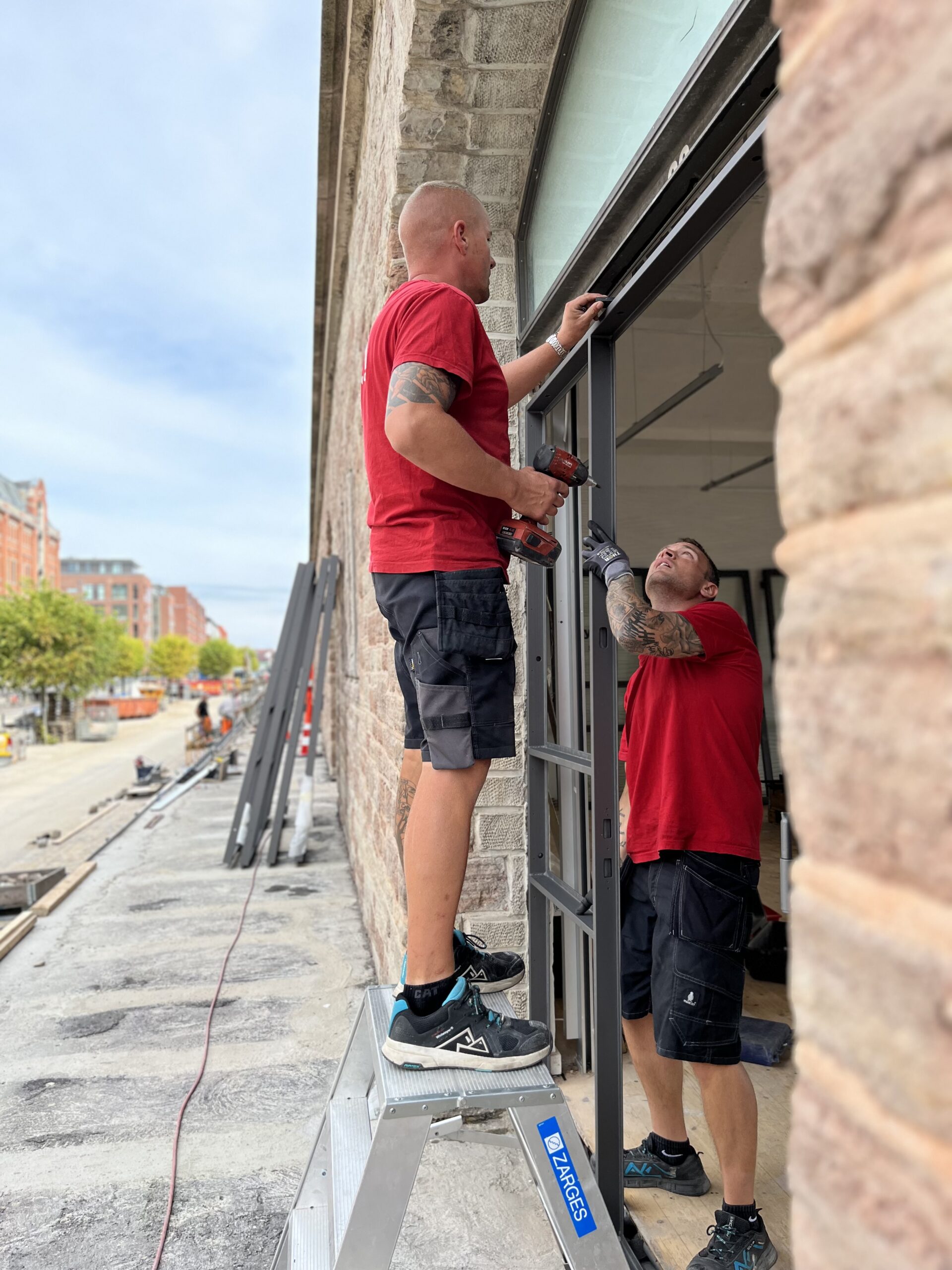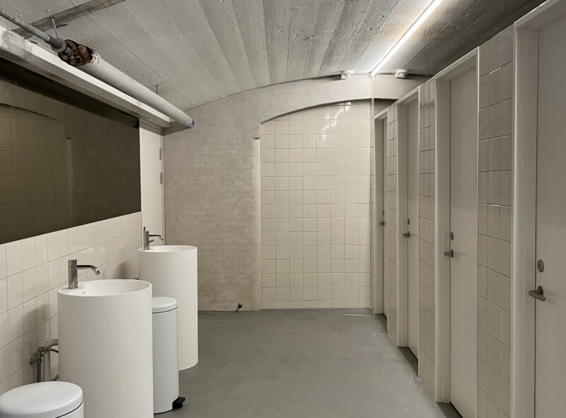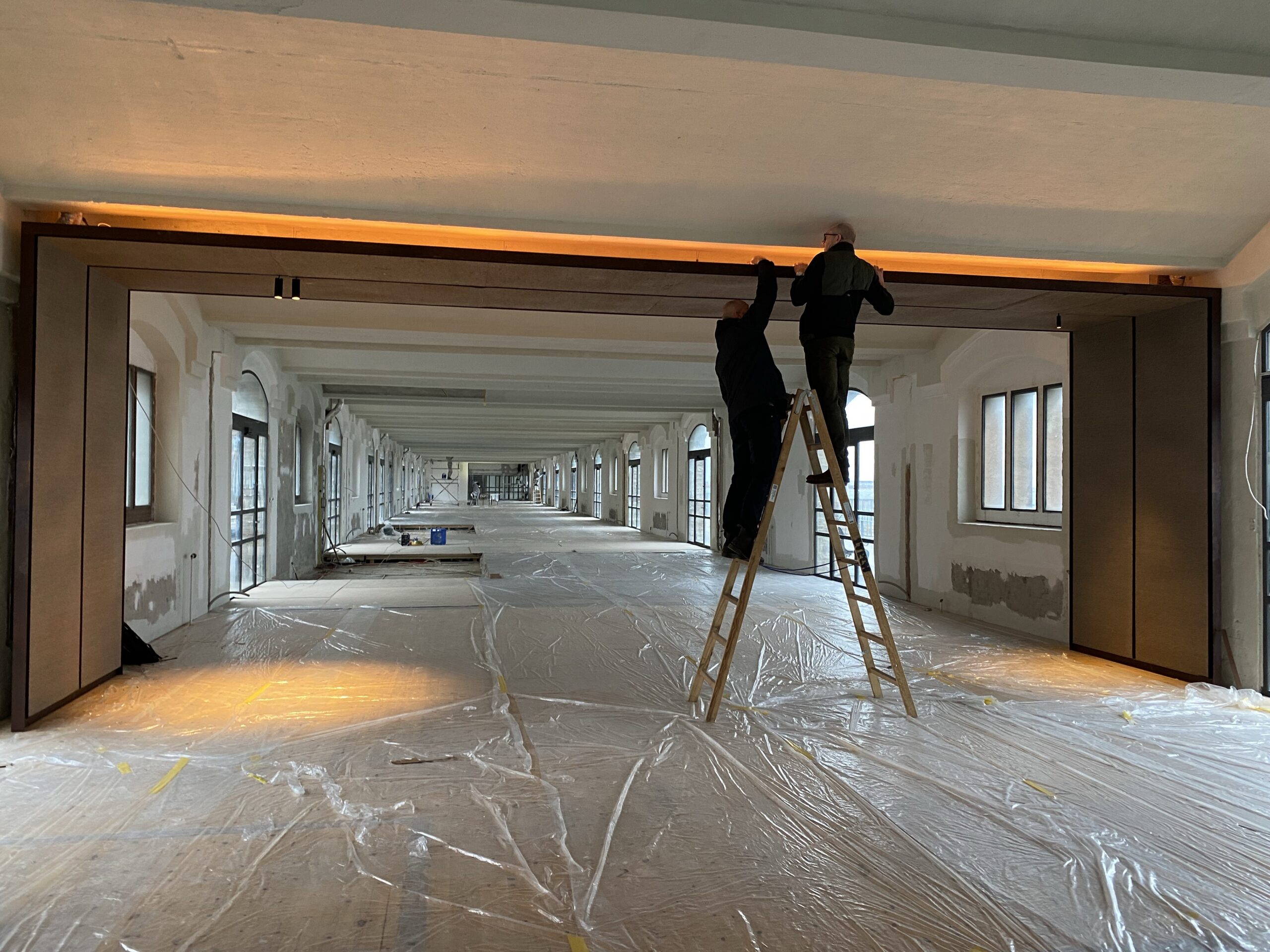 Der er mange fagligheder ind over for at renovere så stor og særlig en fredet bygning. Betonarbejdere arbejder sjældent med fredede bygninger og vi har derfor skulle have nye sider af de fagligheder frem. Hos smedene har vi fået alle bygningens 60 porte renoveret, brostensbelægningen udenfor har været oppe for at lægge omfangsdræn og lagt igen af dygtige brolæggere. På promenaden har snedkerne skabt langbord egetræ med tapsamlinger og betonstøberiet har lavet bordplader og plantekasser. De mange samarbejder, har skabt indsigter på tværs af discipliner.