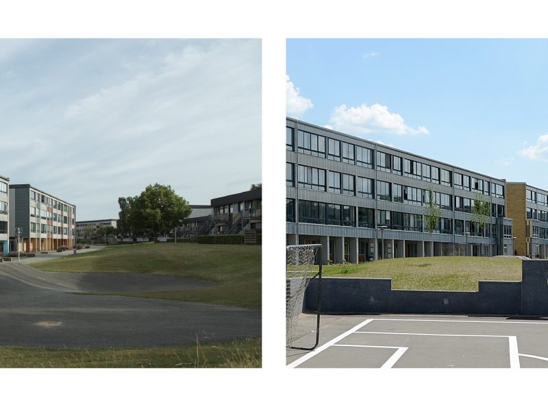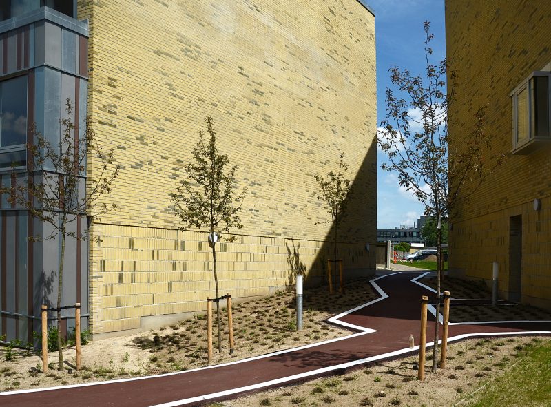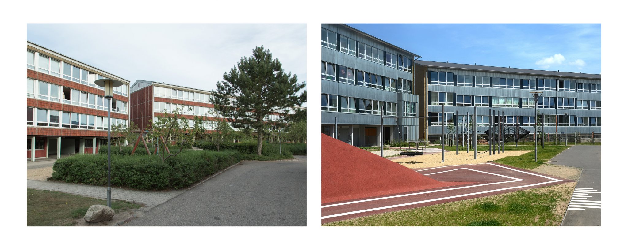 Bygningsfysisk er der valgt kvalitetsmaterialer, som patinerer smukt. Det nye kvartershus, den nye daginstitution og de nye udearealer skaber liv i bebyggelsen og inviterer til at danne fællesskaber på tværs af generationer, kulturer og byzoner.