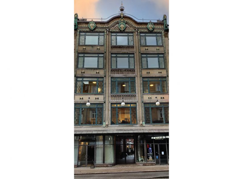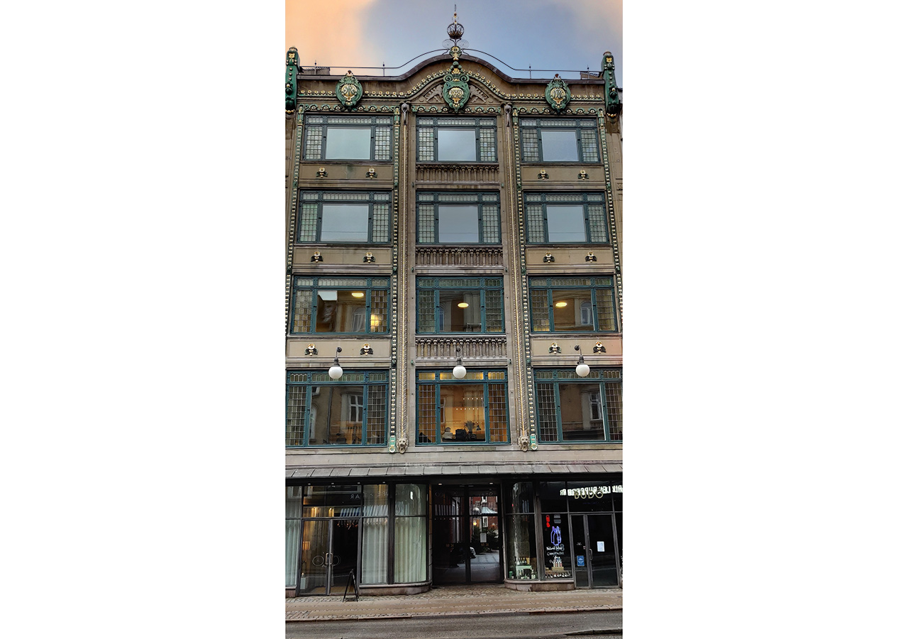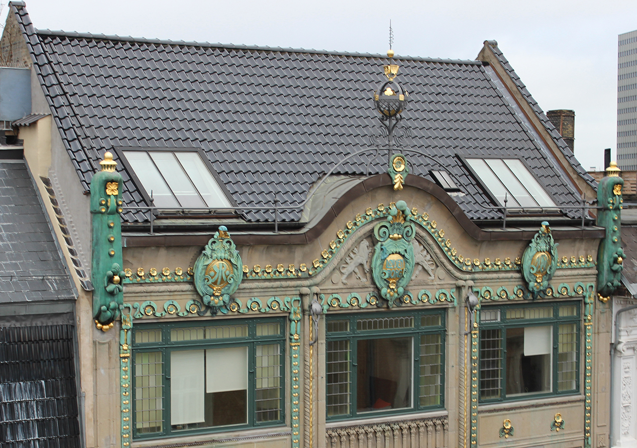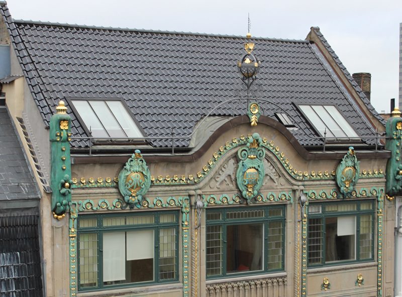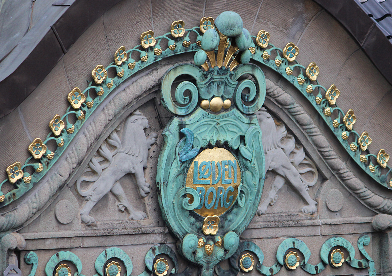 Glemmer man at kigge op, så falder den nederste del af facaden ikke umiddelbart i øjnene, med de mørkebrune baldakiner og tilbagetrukket indgangsparti. Men så snart man løfter blikket og får øje på bygningens smukt harmoniske vinduespartier, og alle de gyldne detaljer, så sænker man farten og dvæler ved husets fremtoning. I Danmark slog Art Nouveau ikke så meget an i arkitekturen, som i kunsthåndværket og vi har derfor ikke mange bygværker, der indkapsler den strømning som Løvenborg gør det. Det er en fremmed fugl i vores byområder, så de få eksempler på arkitekturen der er, dem skal vi værne ekstra meget om.
