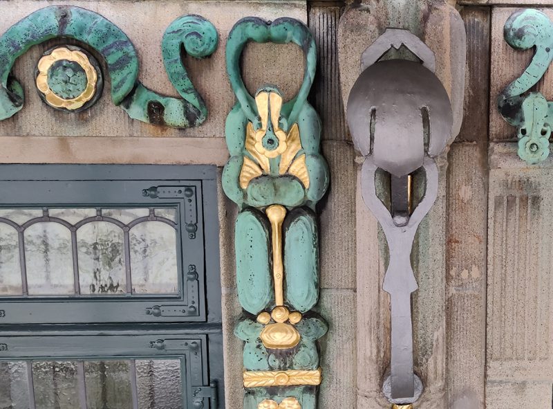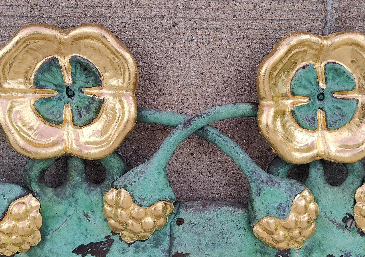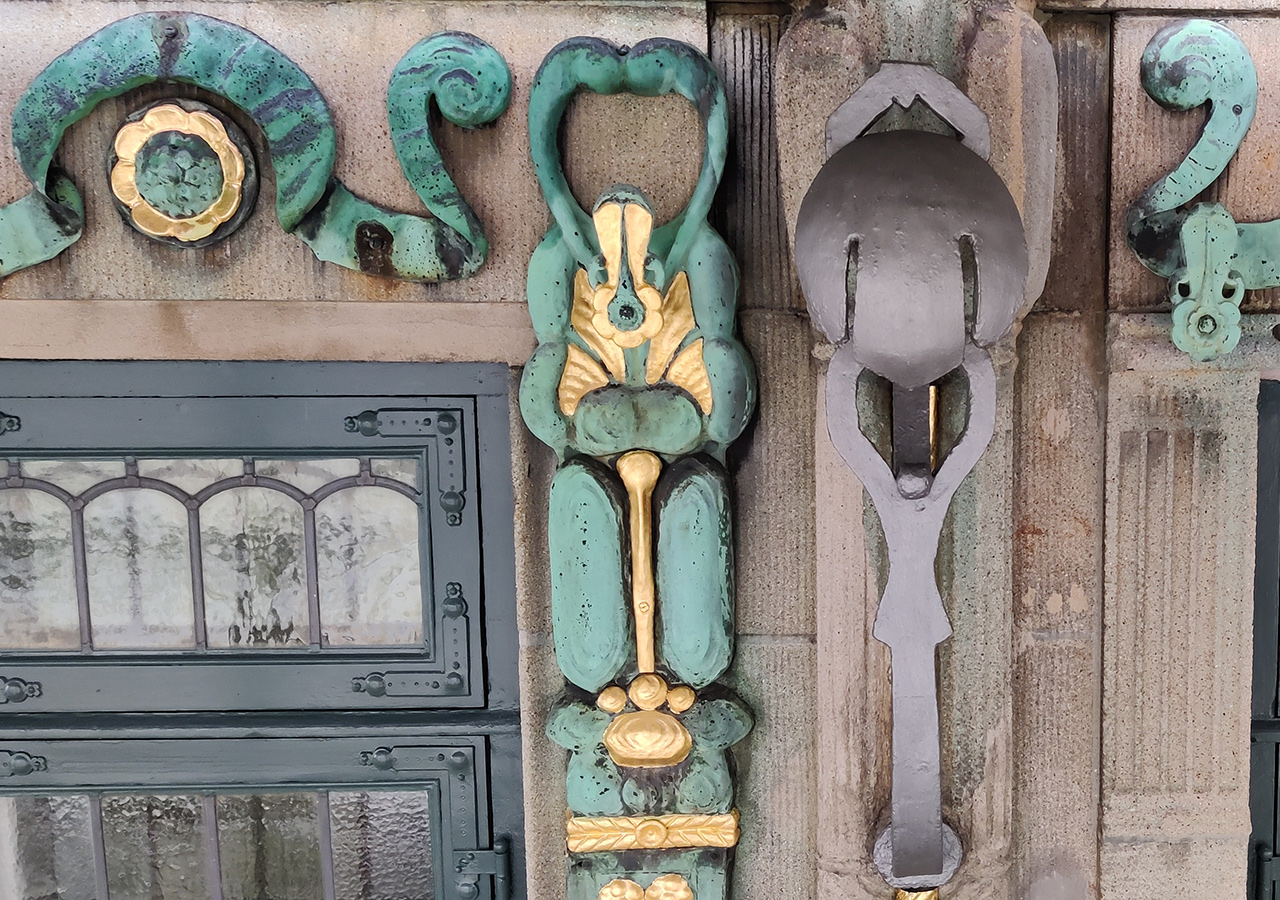 Den forgyldte kobberudsmykning havde mistet sin glans, hvorfor alle facadens forgyldte dele på ny omhyggeligt blev belagt med bladguld.
