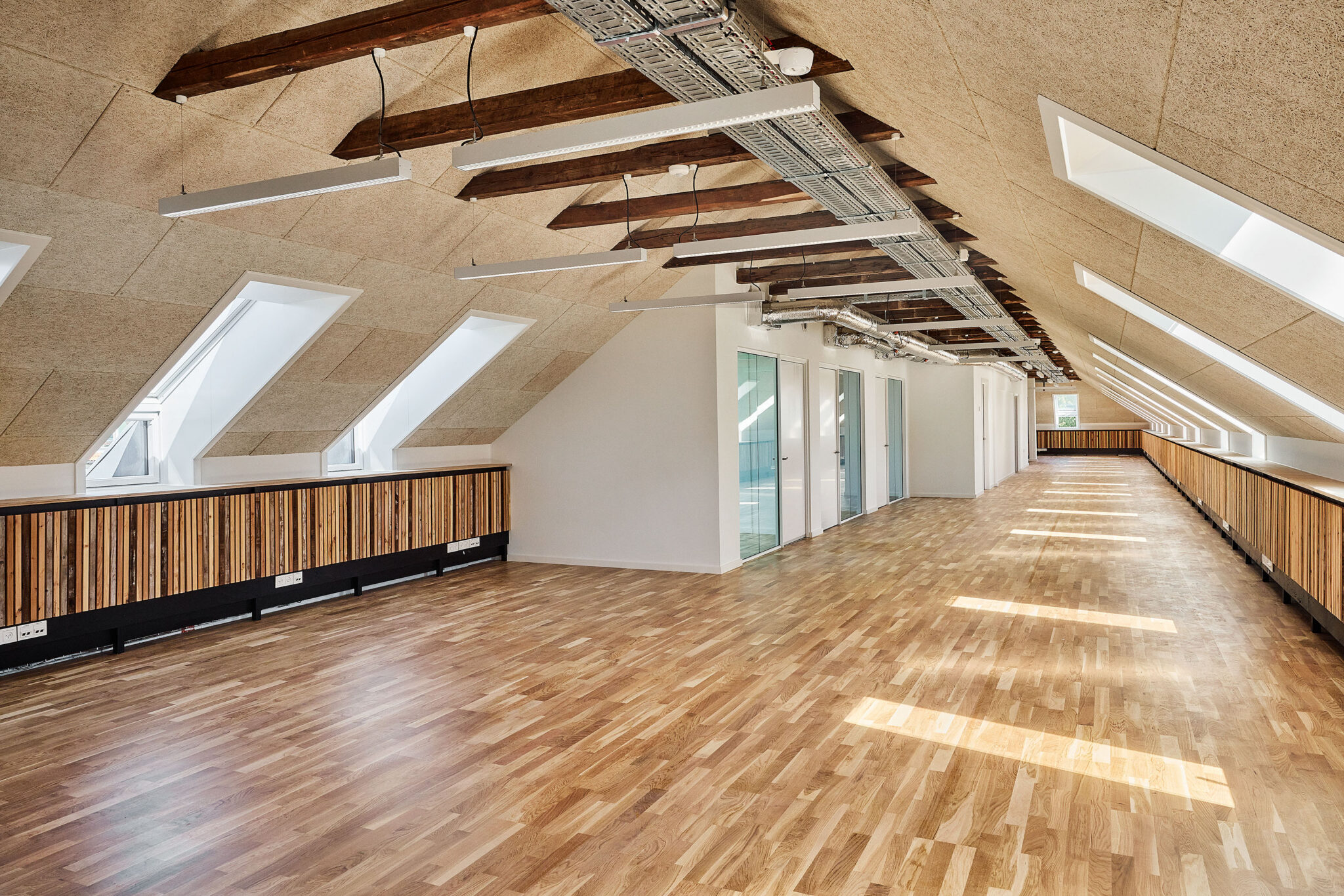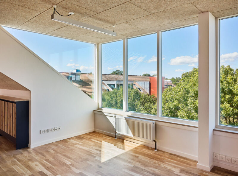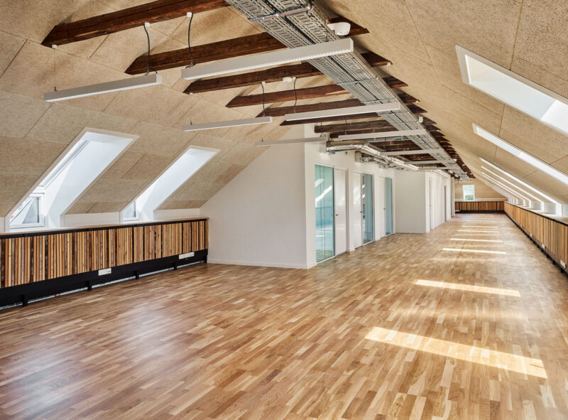 Et godt arbejdsmiljø afhænger af et velfungerende indeklima, og derfor har vi været særligt opmærksomme på fugttekniske forhold. Således har vi optimeret ventilationen og sikret tidssvarende solafskærmning. Derudover er optimeringen af dagslys med til at understøtte gode arbejdsbetingelser.