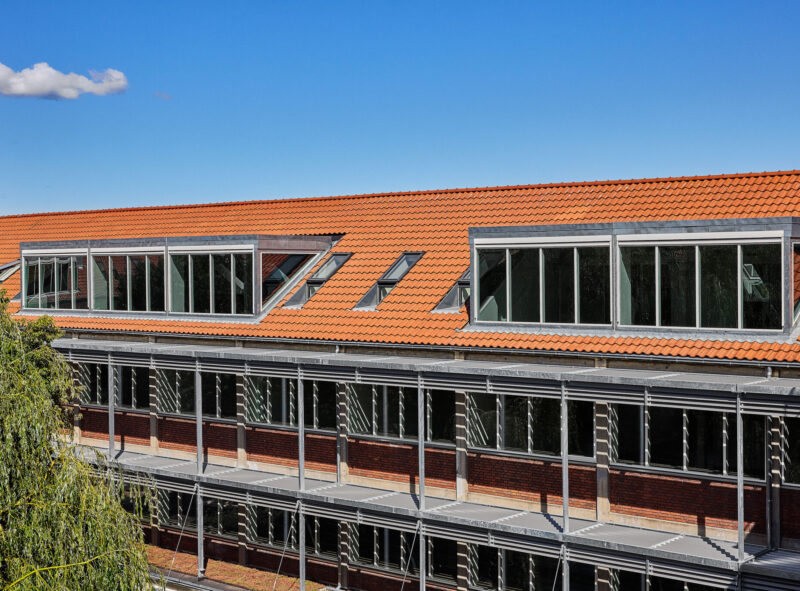 Vi har anskuet det eksisterende byggeri som en ressource, vi nænsomt har orkestreret. Den store teglbygningsmasse har givet robusthed og historisk fundament for de relativt få og enkle indgreb vi har foretaget. Således har vi bevaret så meget som muligt af det oprindelige hus – konstruktioner, trapper, etagedæk, facade og tag – og tilført nyt med øje for æstetik og genbrug. Vores mål har været at bevare den ydre geometri.