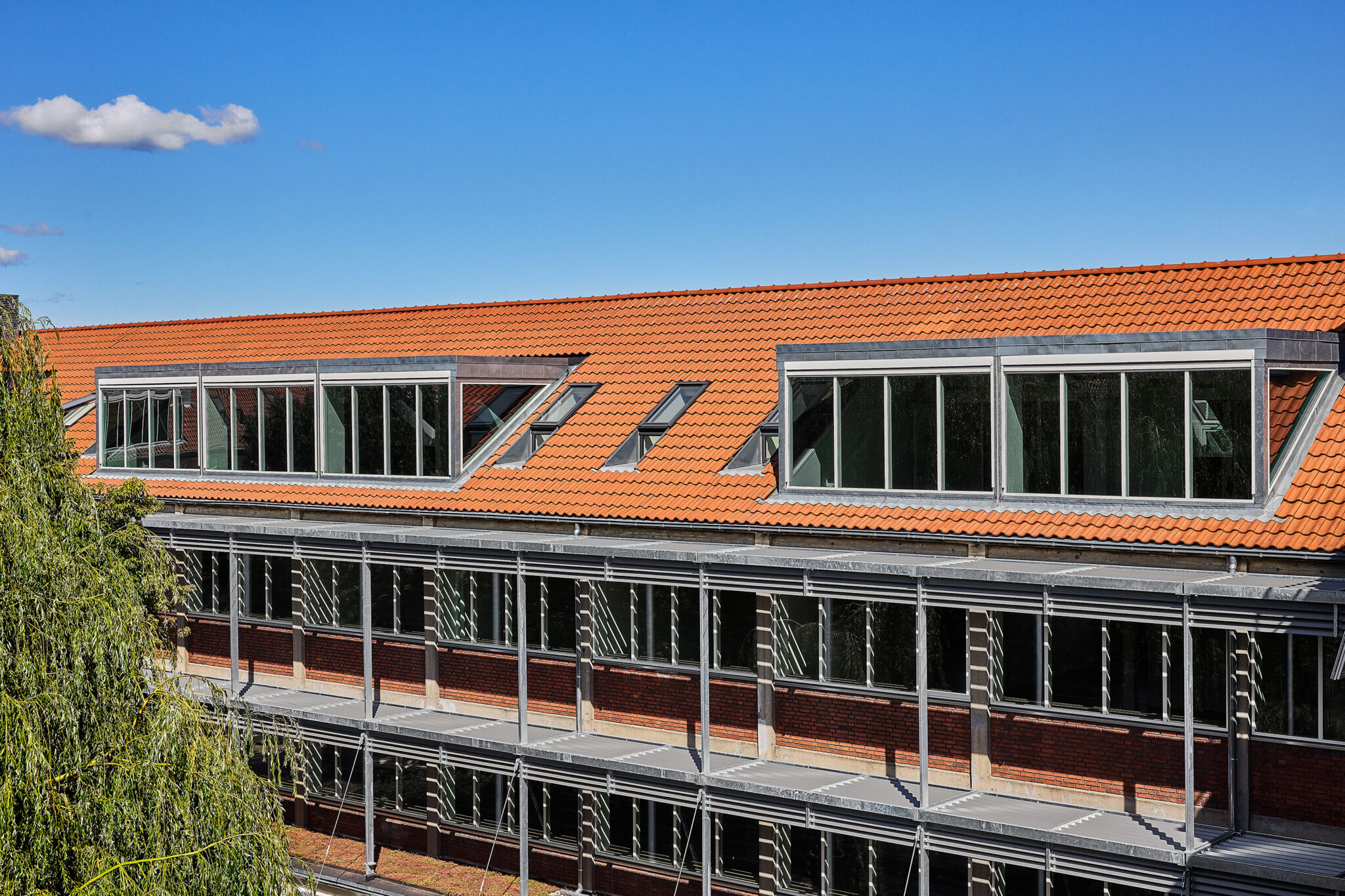 I tagetagen skaber nye kviste bedre rumligheder, dagslys og udsyn til gårdrummet – og giver samtidig mulighed for at se på tværs af hele bygningen. Derudover er der åbnet til kip med synlige hanebånd. Ved at etablere store kviste optimeres kontorarealet med bedre og større rumligheder, der samtidig har gode dagslysforhold. Der tilføres desuden yderligere tagvinduer for at øge kvaliteten på arbejdspladserne.