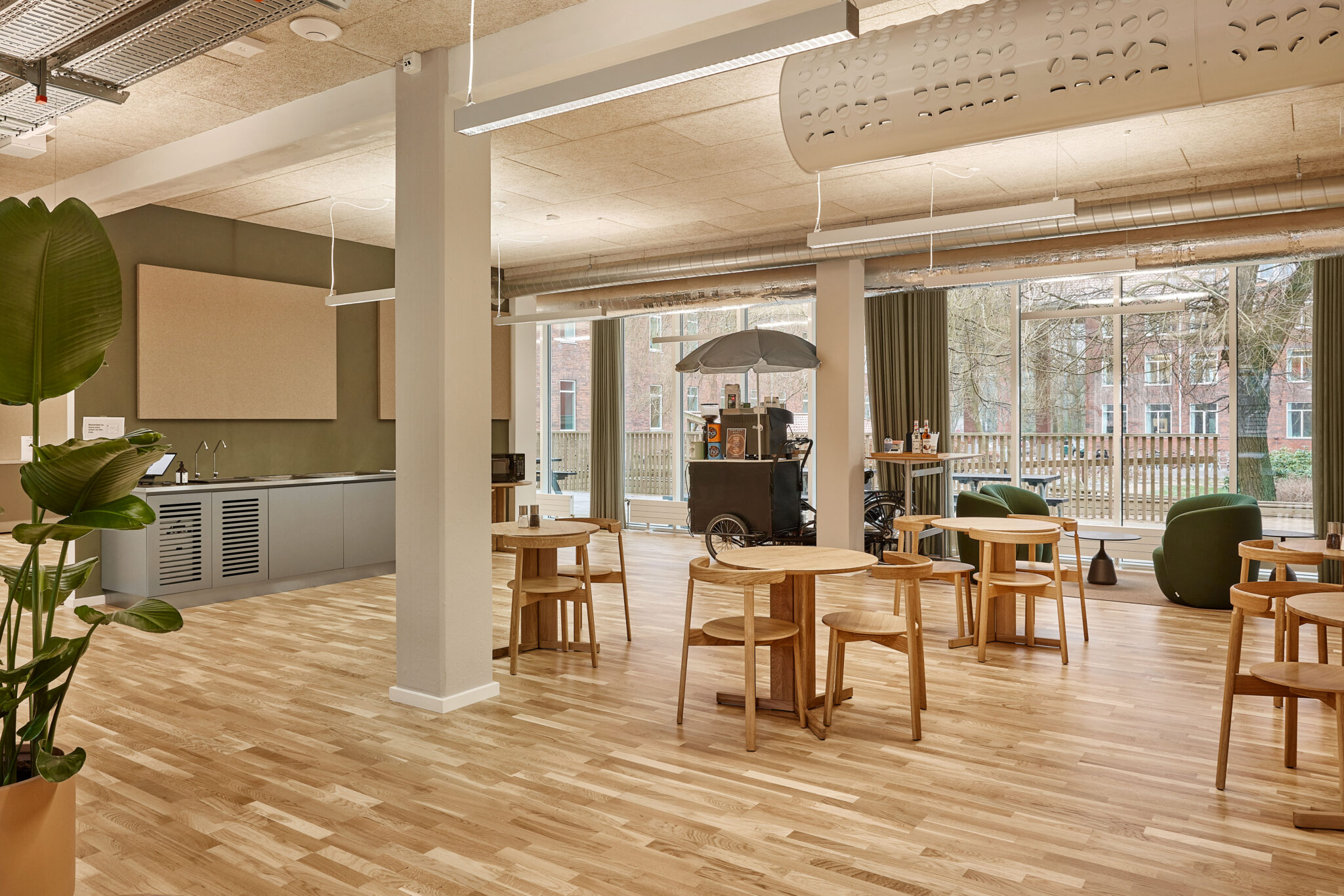 For at understøtte fællesskabet i flerbrugerhuset har vi etableret Torvet som husets nye mødested. Her ankommer man til huset, og her er husets hjerte – med mødecenter samt køkken- og spiseområde. Torvet er indrettet med små siddenicher og et større forsamlingsområde til fælles arrangementer.