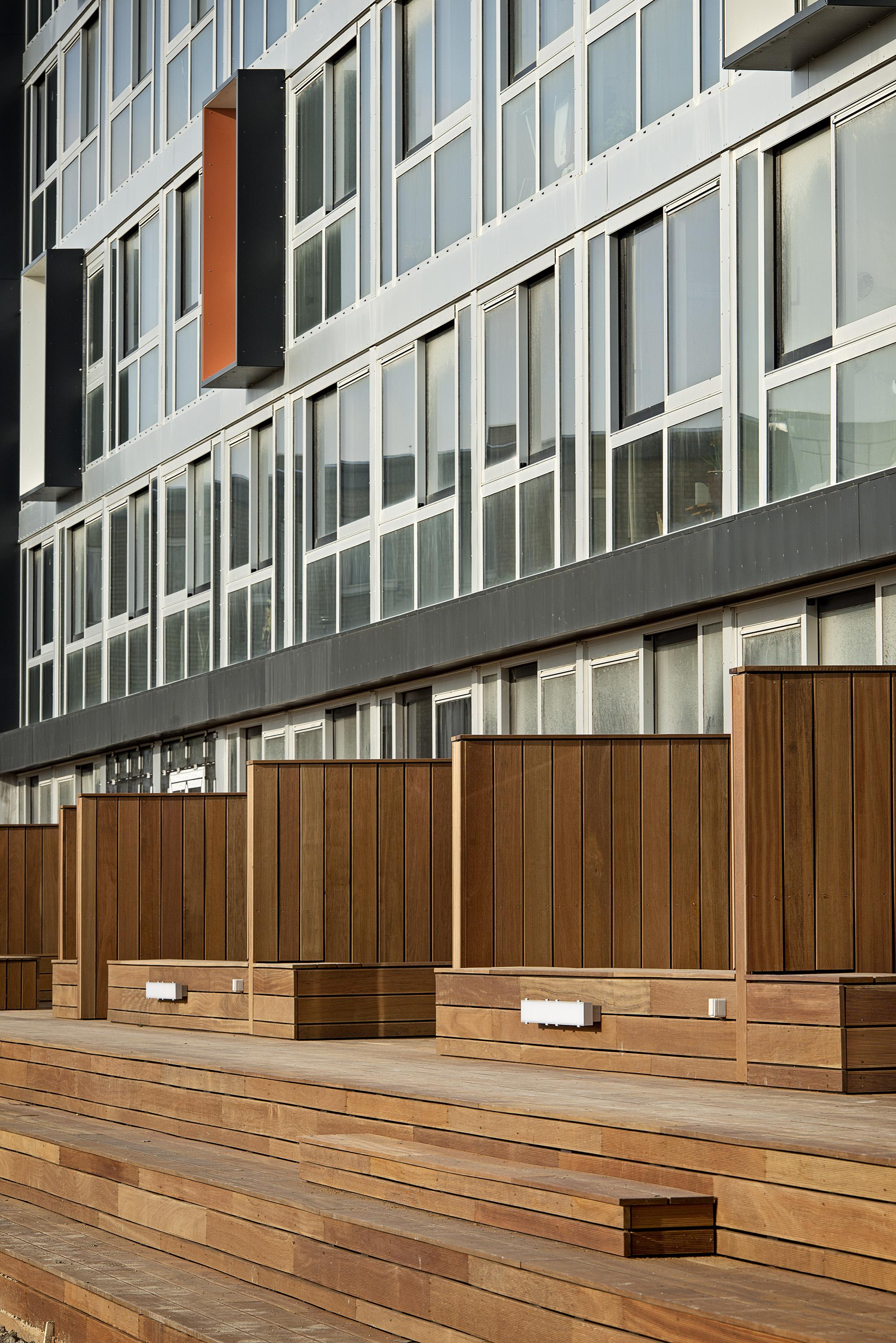 Den høje bloks betonskelet sættes derfor i stand og samtidigt lægges flere lejligheder sammen, så det samlede antal boliger falder fra 169 til 120. Flere lejligheder lægges sammen vertikalt, hvilket giver anderledes og mere moderne lejlighedstyper, som også appellerer til nye beboergrupper. Samtidig renoveres facaderne på både højhuset og de mindre blokke, så de fremstår som et mere samlet byggeri. Vinduerne gøres større, så lejlighederne får markant mere lys og bedre udsigt, og facadeudtrykket på treetagers-boligerne varieres med karnapper, indramninger og partier med perforeret metal, der skaber spændende lys- og skyggevirkninger.