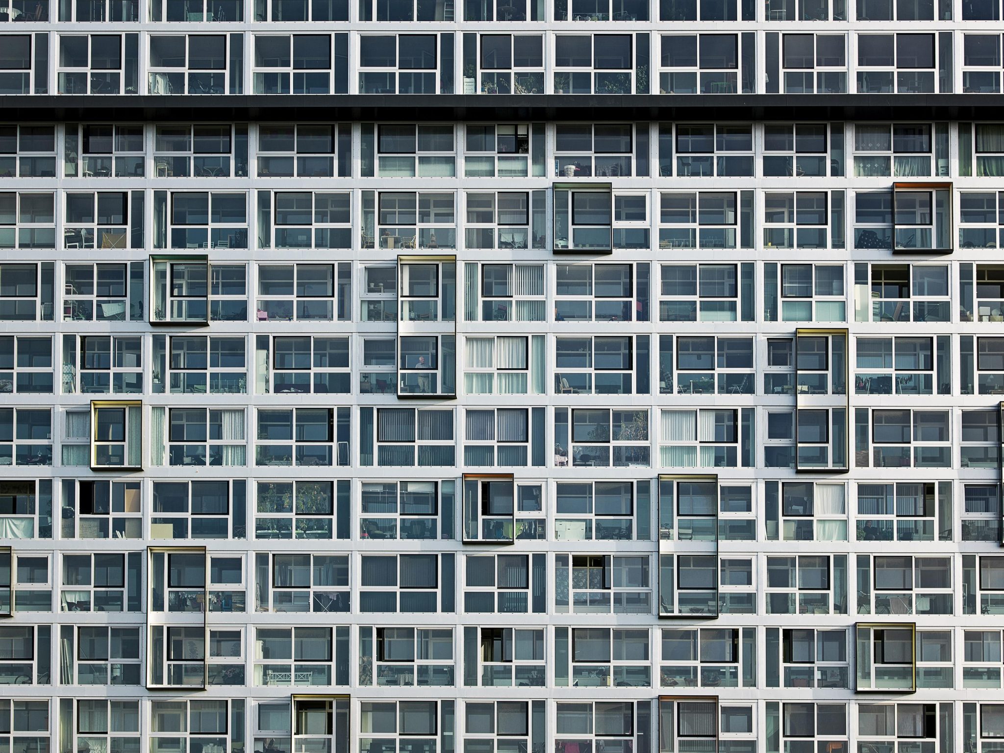 Der er anvendt to principper for lejligheds sammenlægning. Vandret og lodret sammenlægning. Eksemplerne på vandret sammenlægning var i flere tilfælde meget vellykket. Når sammenlægningen var bedst var der med et sikkert greb etableret tosidigt belyste gennemgående rum med en indlevet disponering af boligplanerne. Køkkenets kompakte fritstående veludstyrede kærner fungerede som et bymæssigt monument, mens boligens gulvareal fungerede som et offentligt bymæssigt areal. Det fremmer bevægelse og nye gangmønstre og er endvidere en spændende løsning langt væk fra repetitionen af bevidstløse planer, der er lige kedelige for alle. Glasfacaden mod syd og nord syd med udsigt i wide screen format fungerer som afgrænsning af en smal privat altan og det fælles adgangsareal til boligerne. Altanerne orienteret mod syd har mange kvaliteter hvad angår brug i en større del af året og energibesparelse, men risikoen for overophedning i sommerperioden er med den minimale dybde reel.