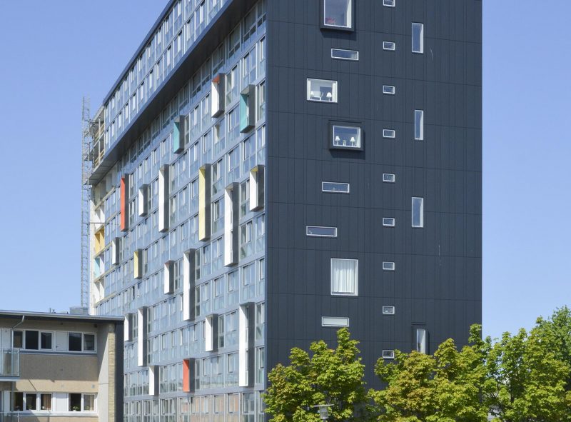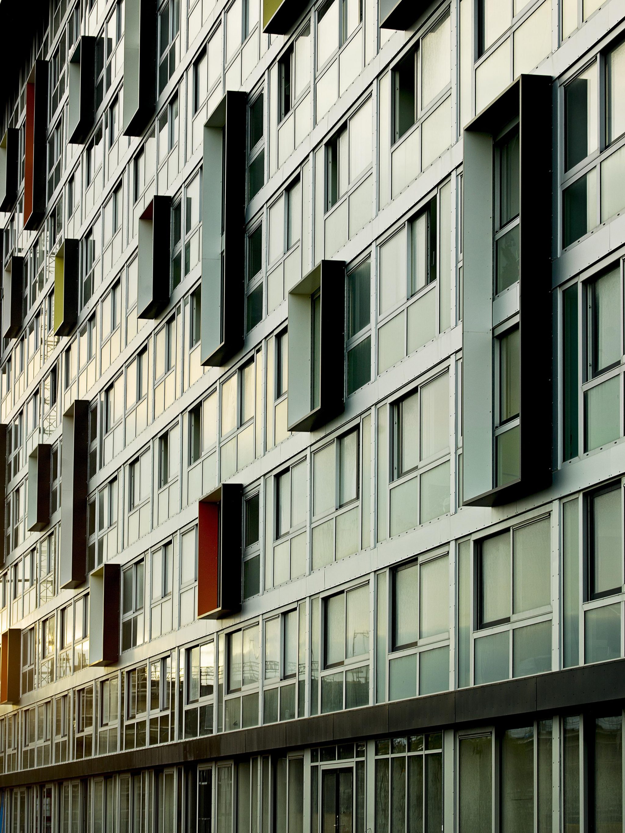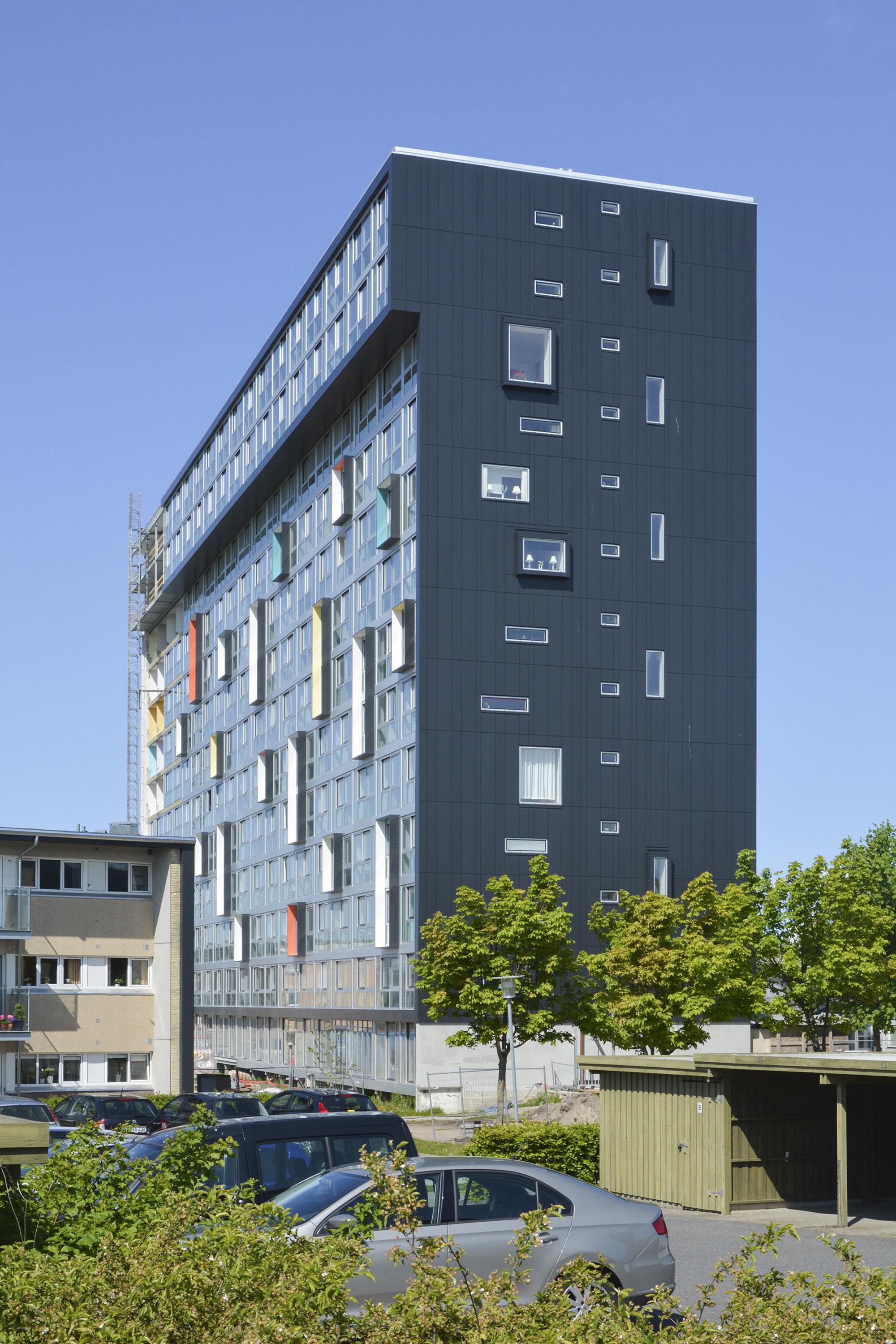 Allerede på distancen lever Magisterparkens 12 etager mega store blok op til forventningerne om et alment boligbyggeri med en udstråling og et format så potent at det kan fungere som et markant landskabeligt og bymæssigt fixpunkt. Det er klasse.