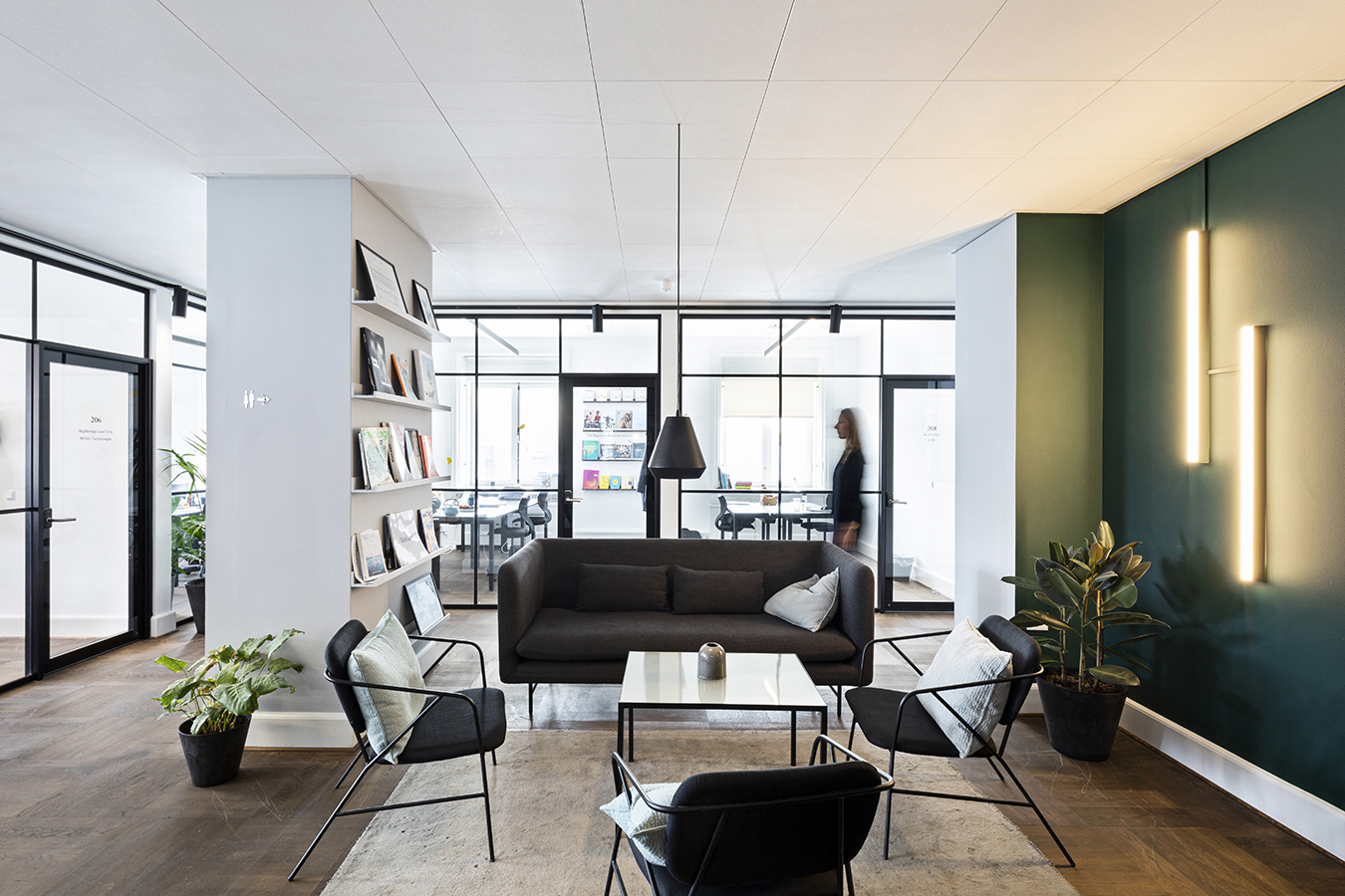 Således bryder markante farver, neonbelysning og den moderne indretning med, hvad man forventer at opleve i huset, og skaber lommer af særlig intensitet, der vækker nysgerrighed og underbygger husets funktion, som et innovativt mødested. Dybe toner af rød og blå blev valgt, som gennemgående farvepalet, og skaber omsluttende og inspirerende rum. Det giver brugerne mulighed for at træde ud af det typiske kontormiljø og ind i forskellige zoner, der hver især understøtter og udfordrer dem til at arbejde og interagere på nye måder – hvad enten de søger koncentration, kreativitet, samarbejde, inspiration eller netværk og socialisering.