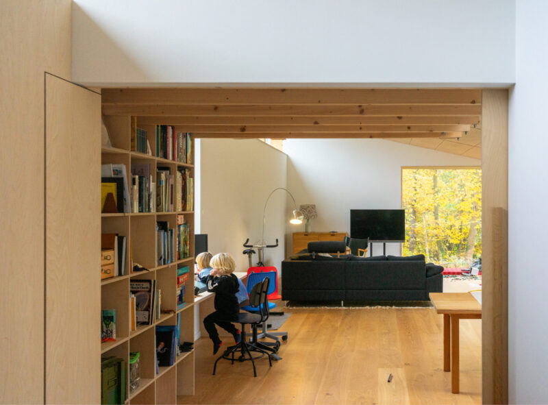Det oprindelige hus blev skræddersyet til børnefamiliens behov. På dengang 90 kvadratmeter skabtes rammerne for to voksne og to børn. Kvadratmeterne var sparsomme og optimeret – og da det ene barn blev teenager og kammeret blev for trængt, blev et hjørne i den lille stue inddraget til et nyt kammer. Da børnene fraflyttede, blev kammeret nedlagt, og stuen igen udvidet, så dette nu kunne huse de store familiesammenkomster. Denne fleksible tilgang dannede grundlag for udvidelsen af boligen, som skulle tilpasses nutidens families ønsker og behov. Tilbygningen udgør i princippet ét stort rum, som opdeles til mindre rum-i-rummet ved hjælp af indbyggede møbler, hems og inventar. Dette skaber fleksibilitet, så boligen kan tilpasses forskellige livsfaser, samtidig med at den er rummelig nok til at være rammen om sociale begivenheder for hele familien, herunder børn og børnebørn, som alle stadig har en tilknytning til huset. Huset er også disponeret, så det eventuelt i fremtiden kan omdannes til to individuelle mindre boliger med et fælles køkken.